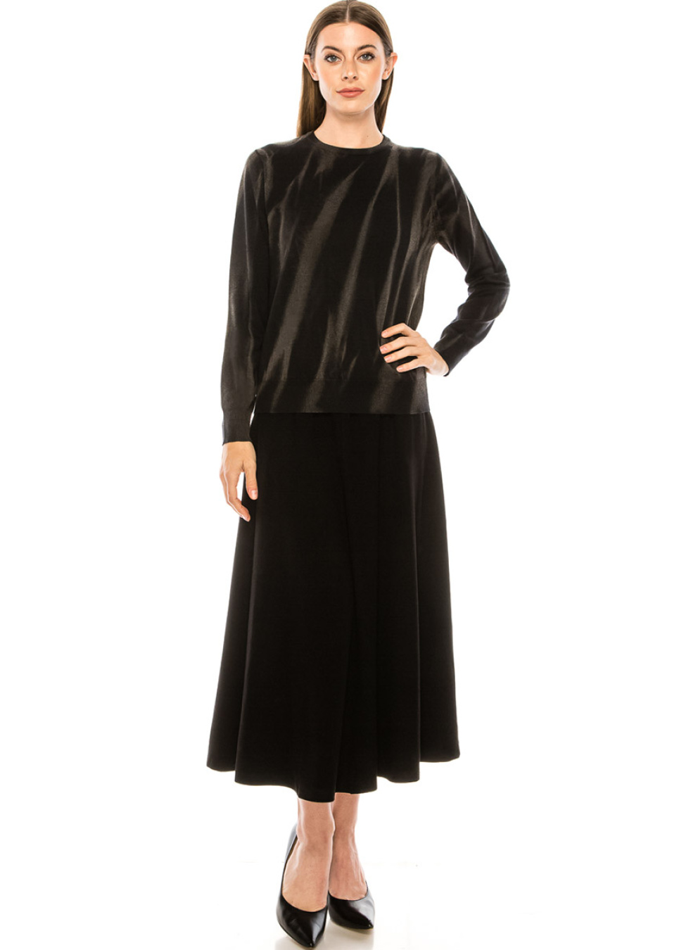Loose stain print sweater in black