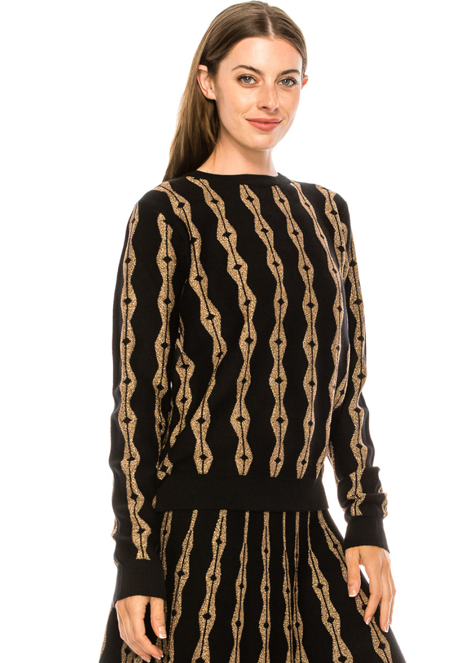 Lurex ornament sweater in golden and black