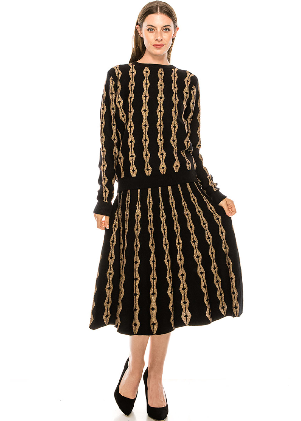 Black and Gold Geometric Knit Pullover