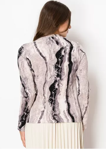 This top features a stunning marble-like design in shades of purple, black, and beige. The soft fabric and modest fit make it a standout piece, perfect for adding texture and elegance to your wardrobe.