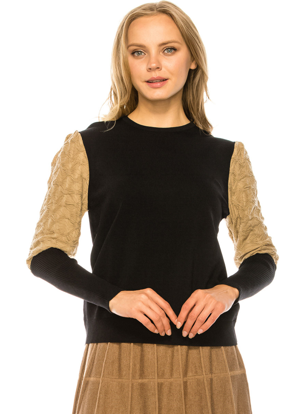 - Beige puff sleeve detailing