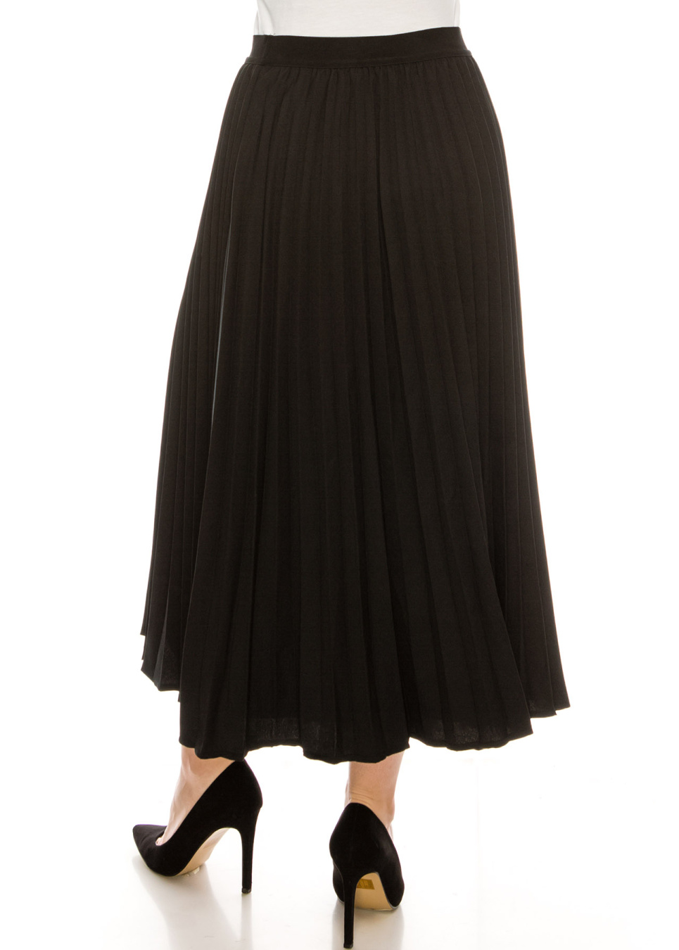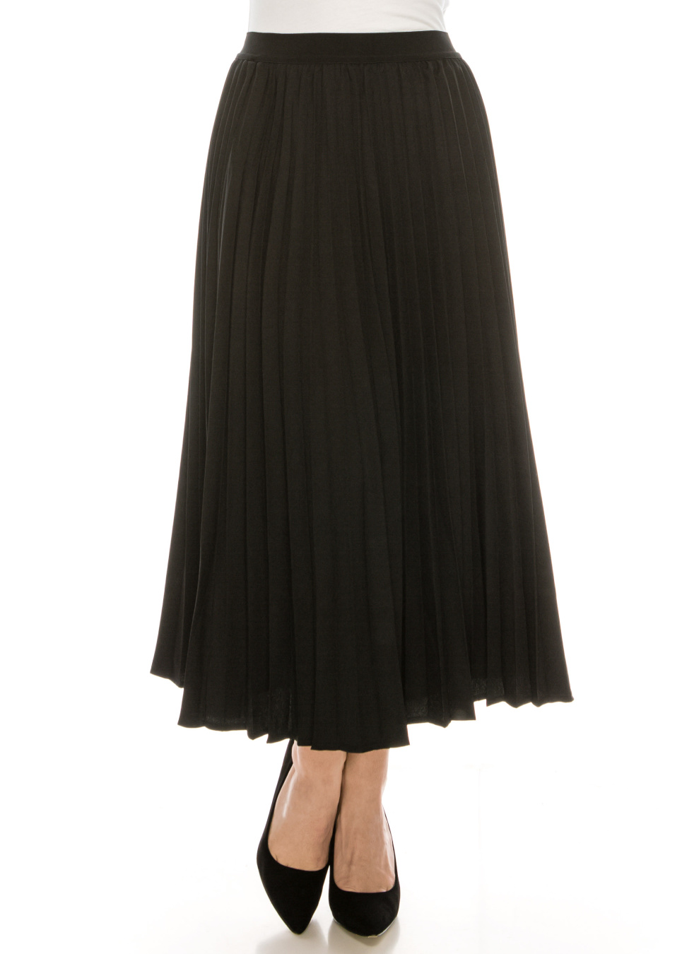 - This pleated skirt is so flattering. We designed this skirt in a way that it would lay flat on the stomach then starts pleating after.
