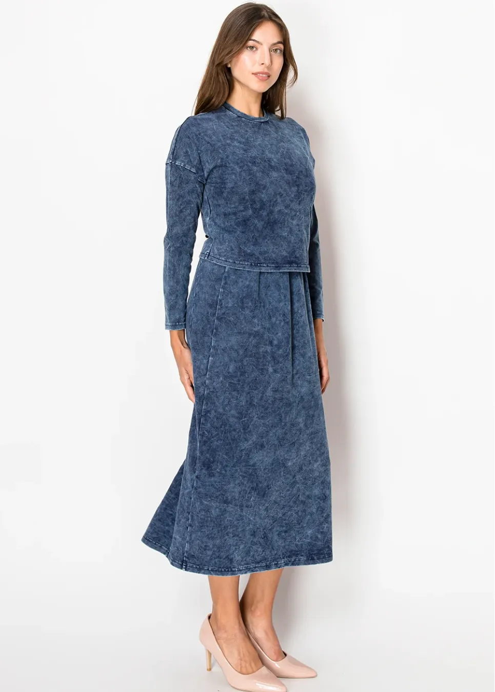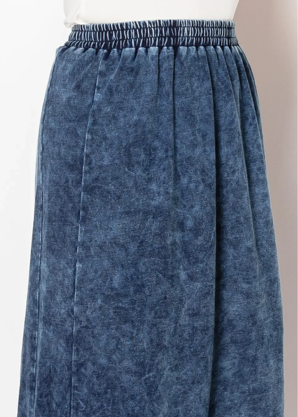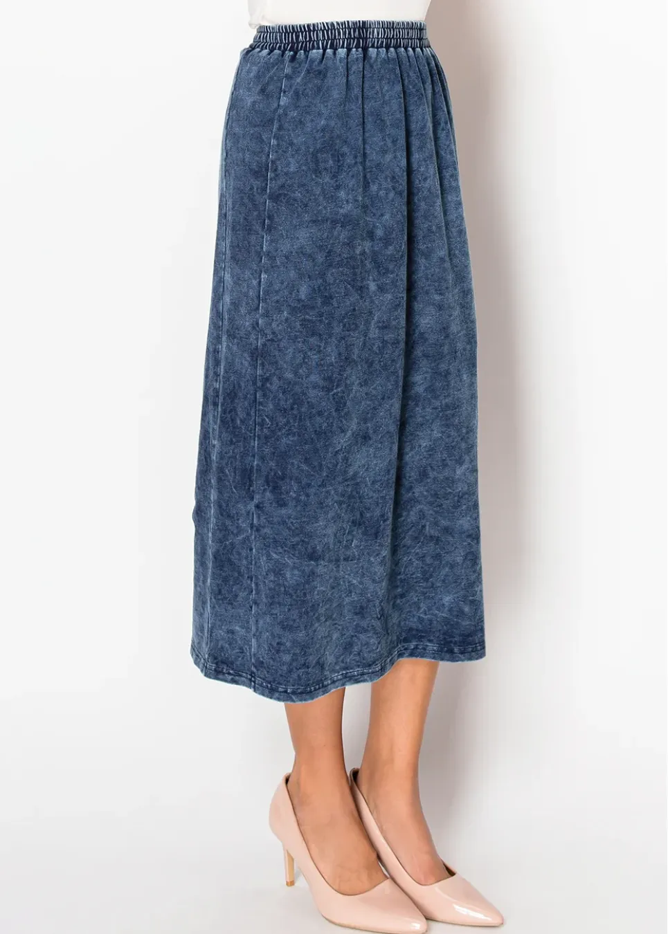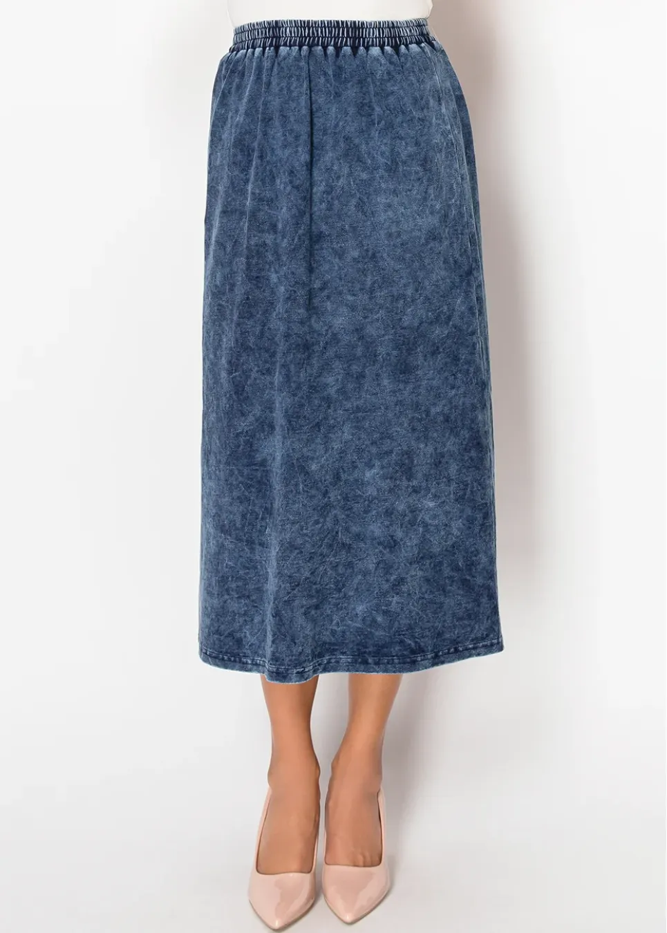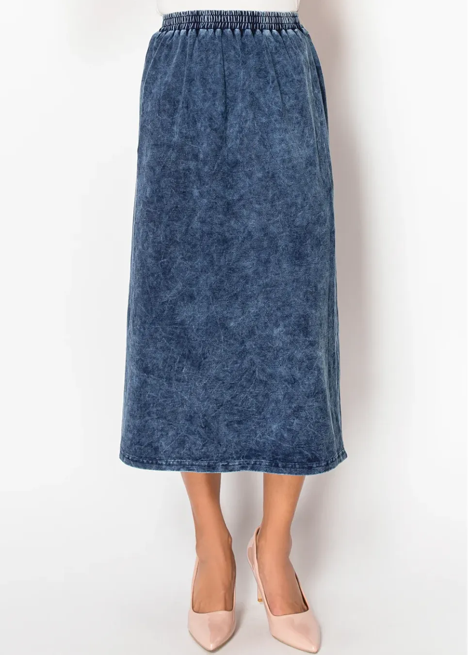 Perfect for a modest yet modern look, this skirt features a rich navy tone and a soft, flowing texture. The elastic waistband keeps things simple and practical, while the clean design allows for endless styling options.