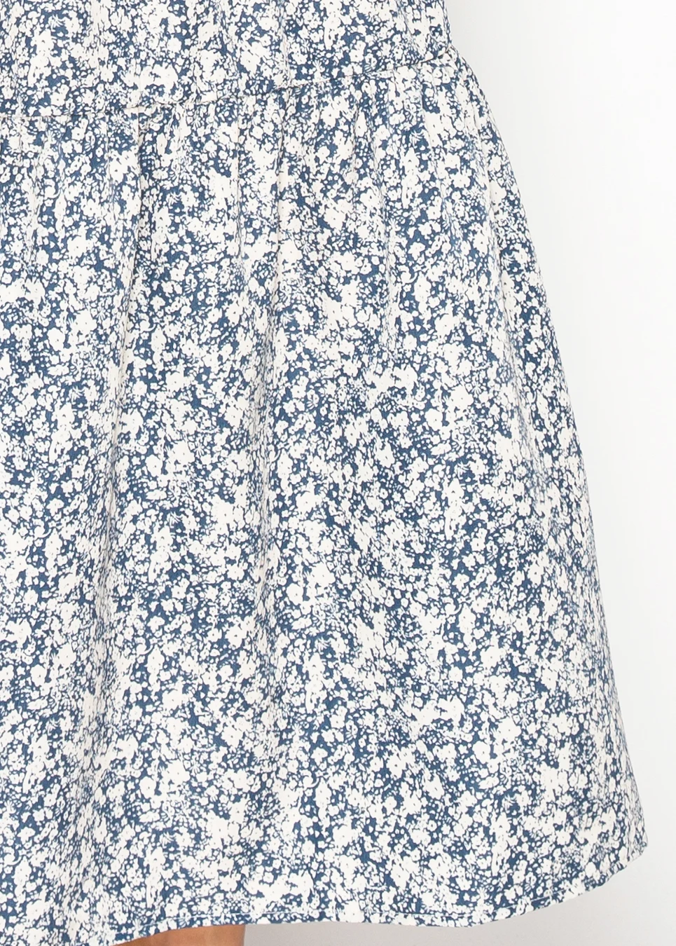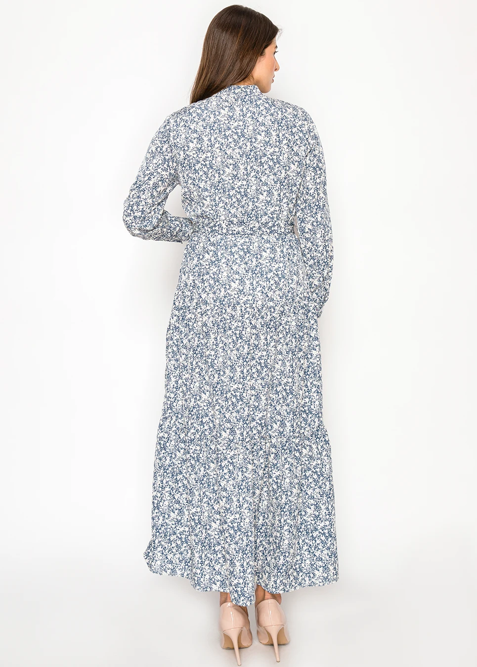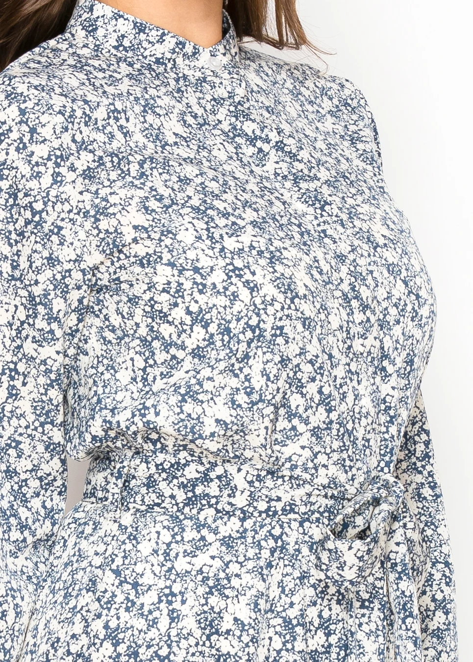 Blue Floral Midi Shirt Dress with Belted Waist