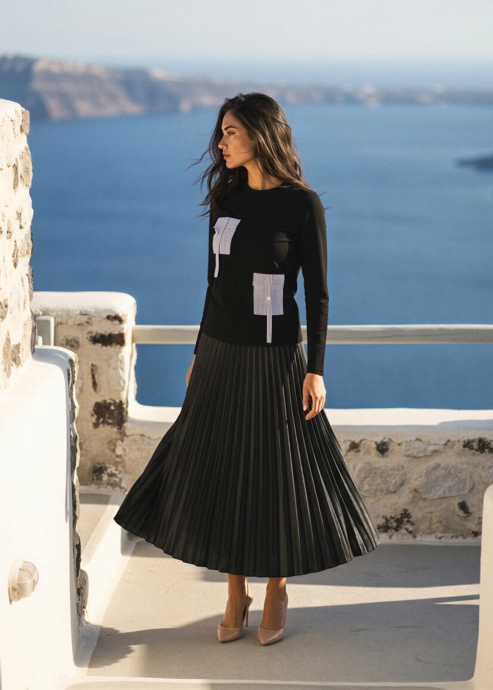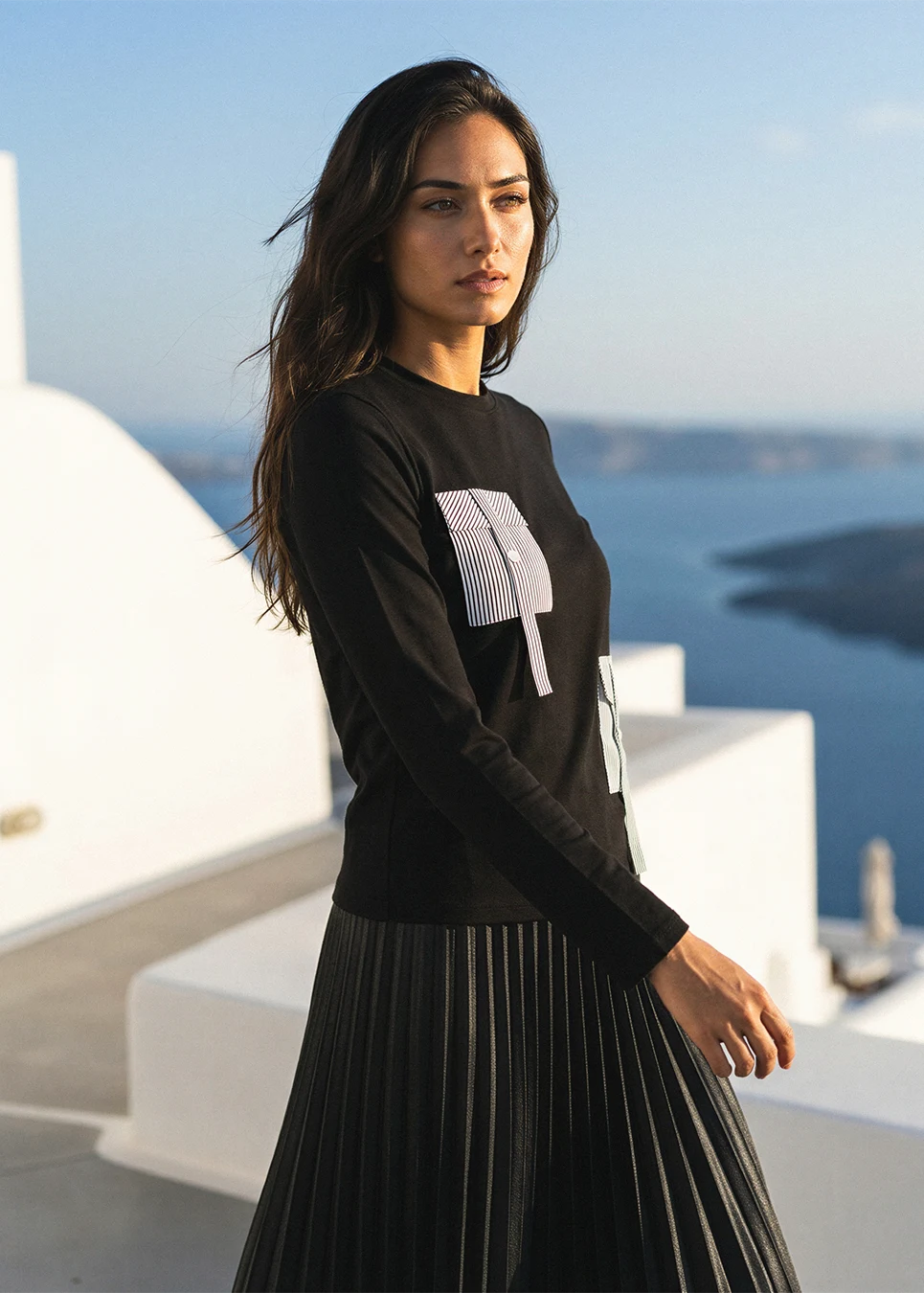 Minimal Black Outfit with Graphic Detail Top