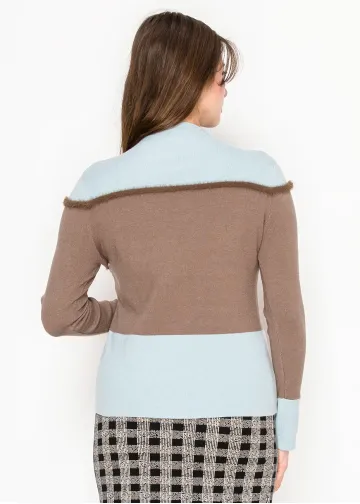 Mock Neck Colorblock Sweater – Blue & Mocha