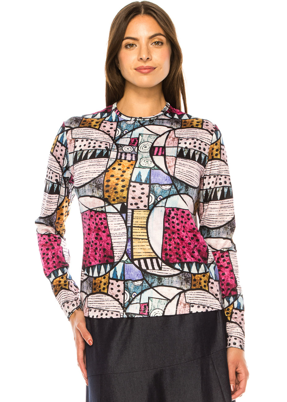 Abstract Print Long Sleeve Button-Front Blouse