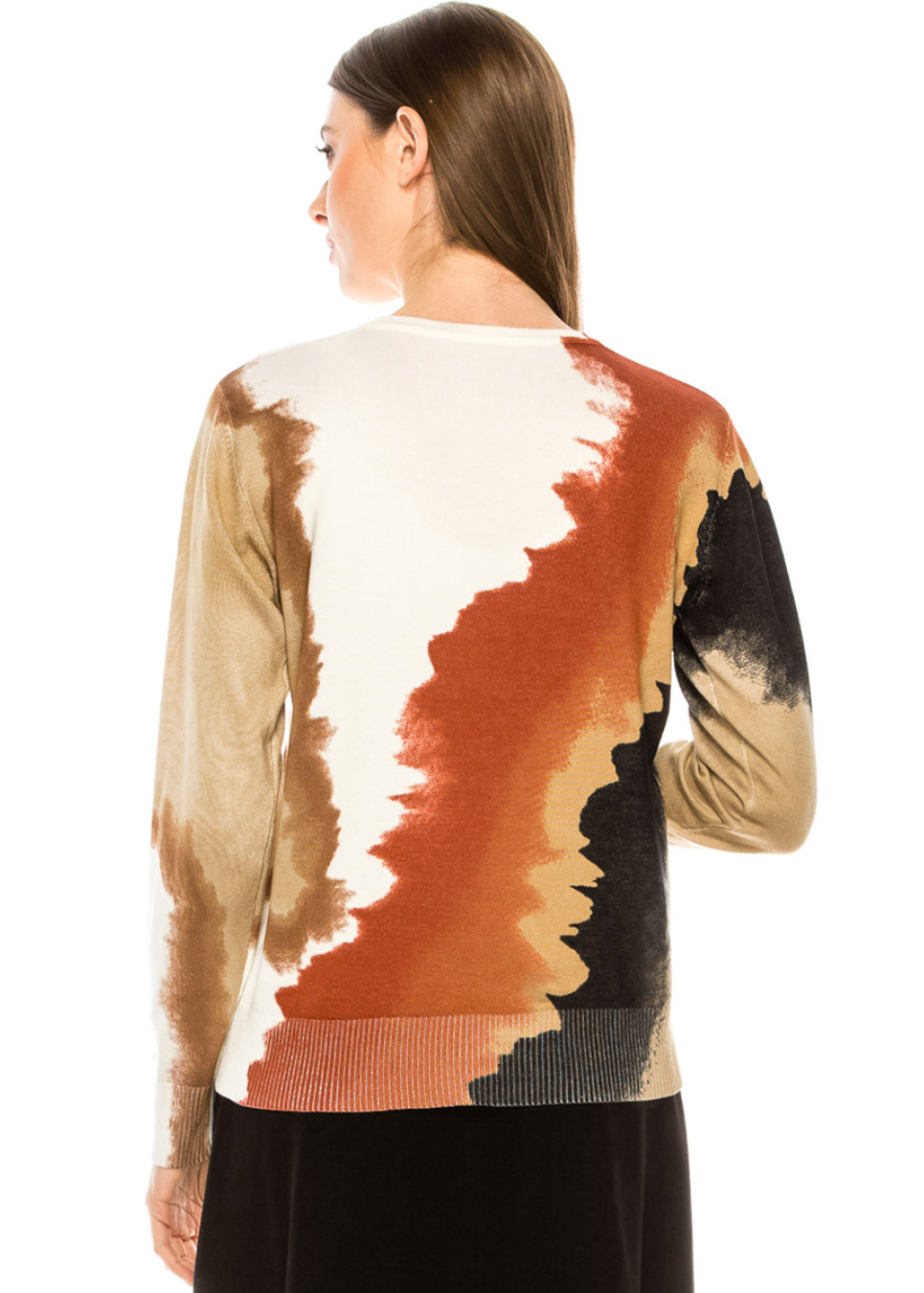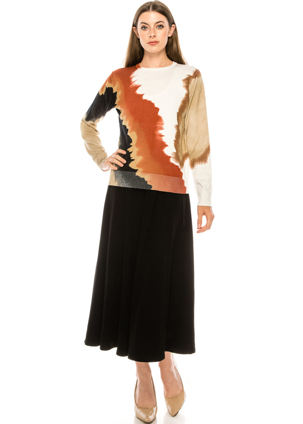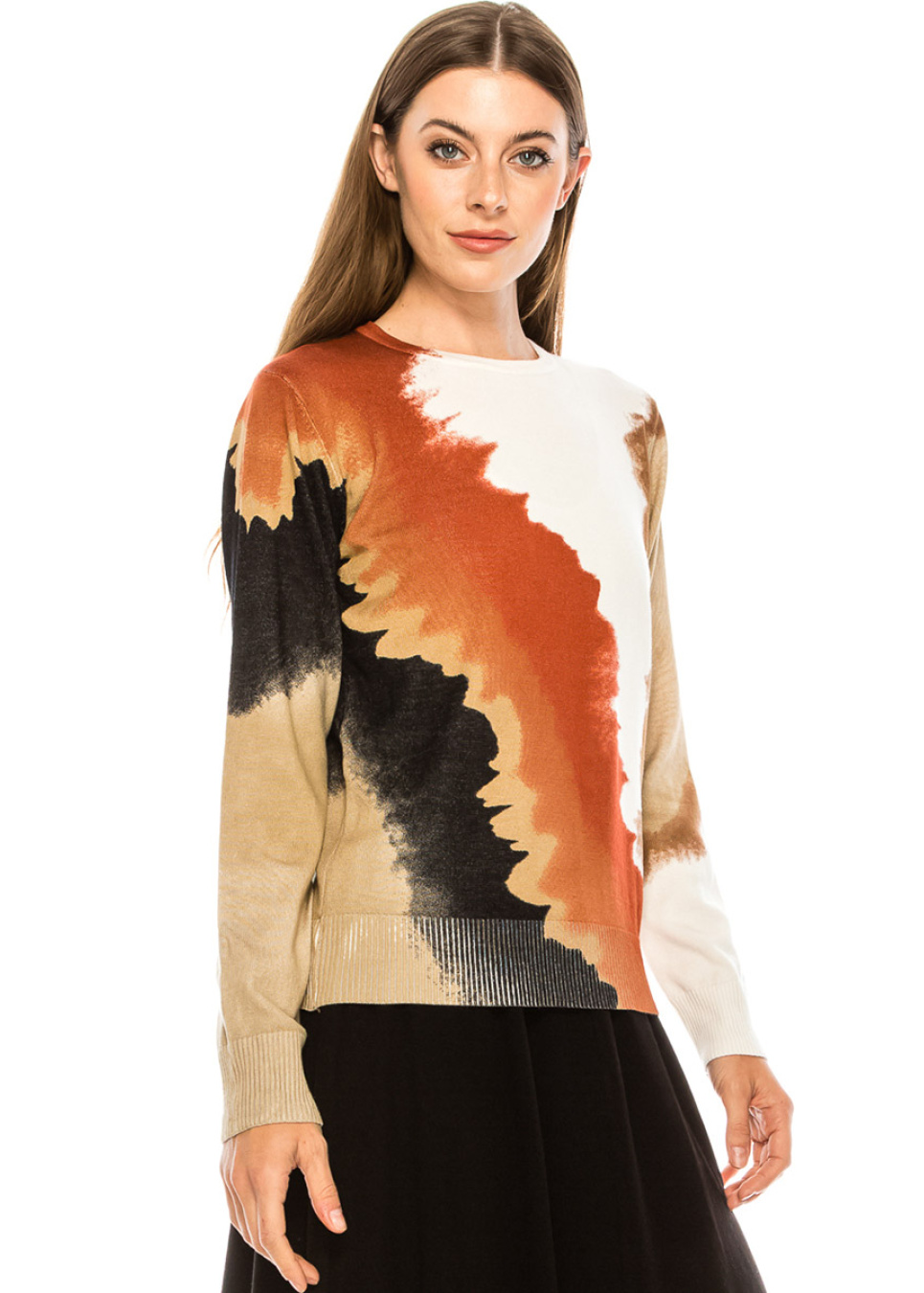 Add a little color to cloudy autumn days with this bright piece. Multi-colored stains will make you stand out and improve your mood. The classical cut and high-quality materials allow staying on the modest and comfy side.