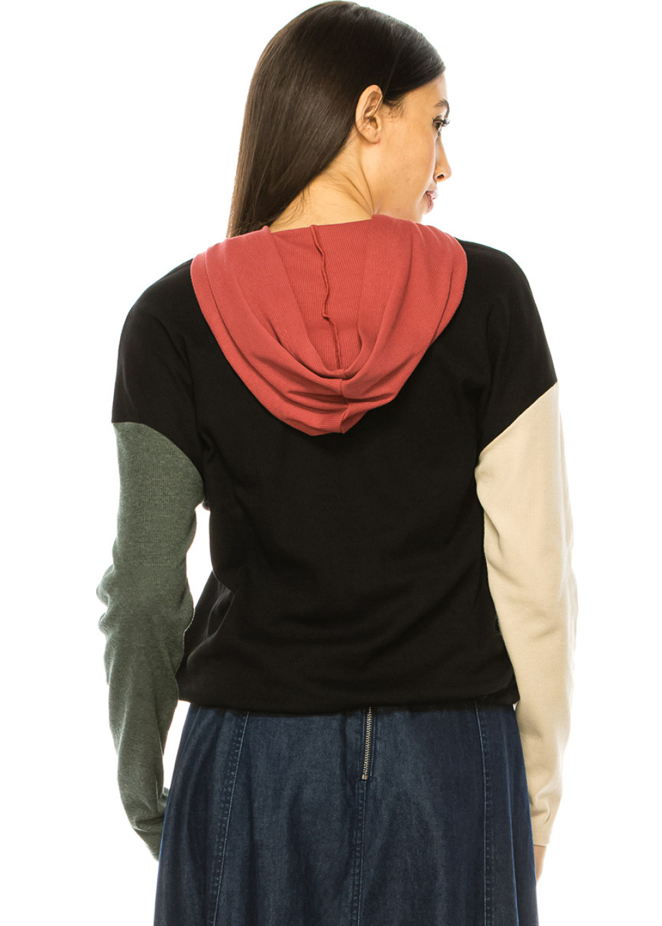Multi-Colored Long Sleeve T-Shirt With Hood