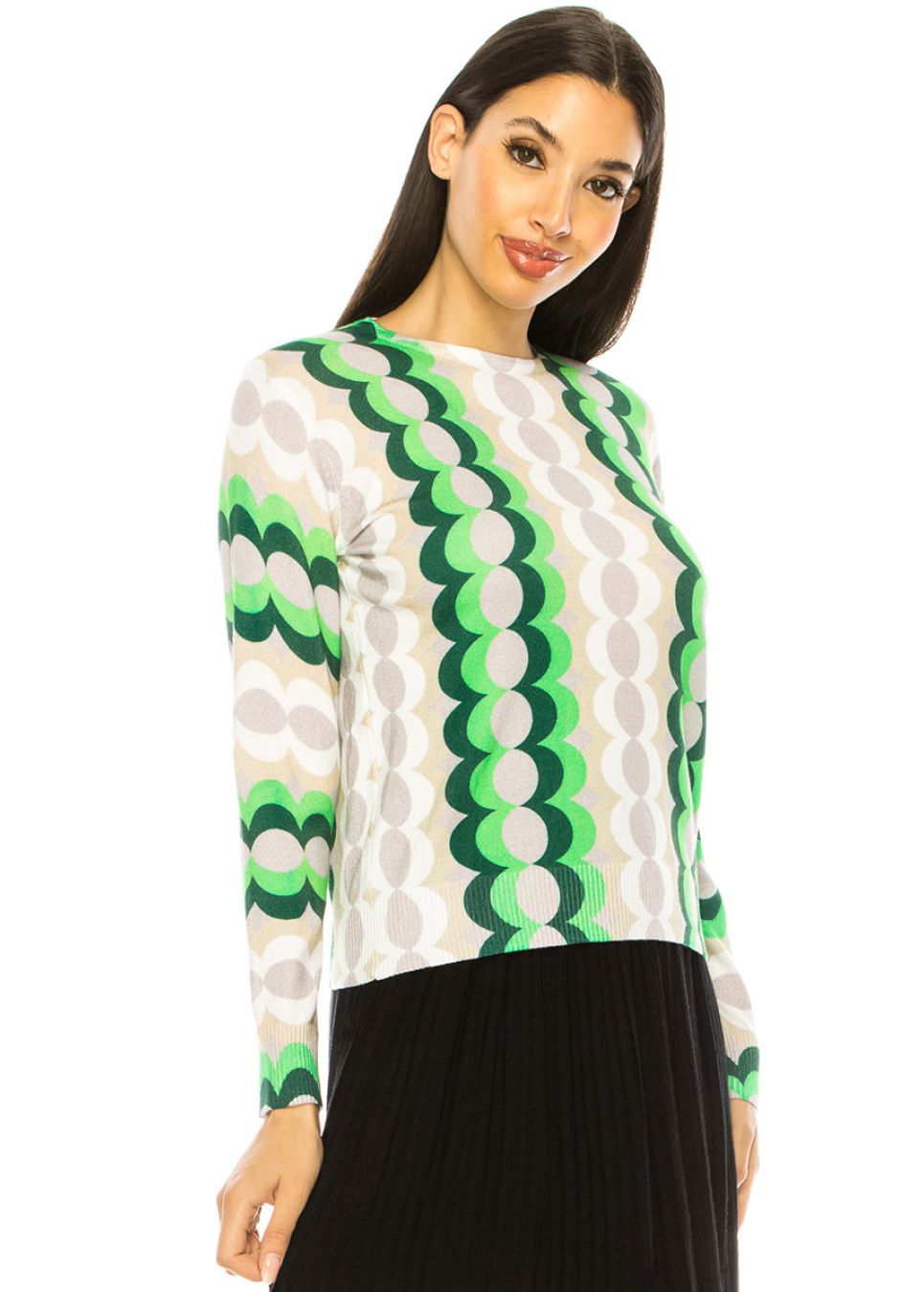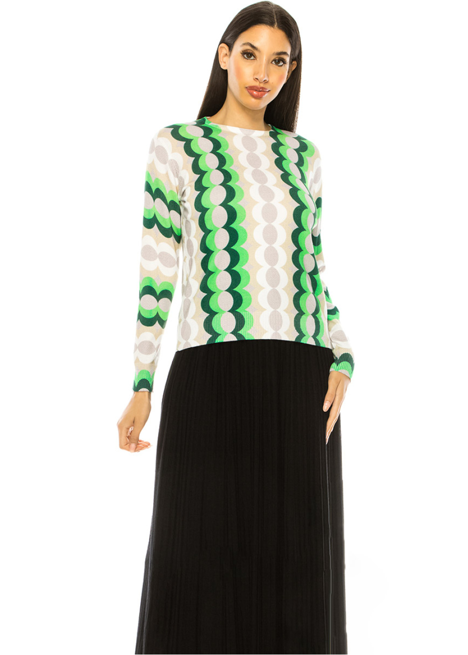 This abstract print sweater is anything but ordinary. The bold colors and unique pattern make it a standout piece that's sure to turn heads. The ribbed hem and cuffs add a touch of texture and dimension to the soft and cozy fabric, making it the perfect choice for a comfortable yet stylish look. Wear it with your favorite accessories to create a fun and fashionable outfit.