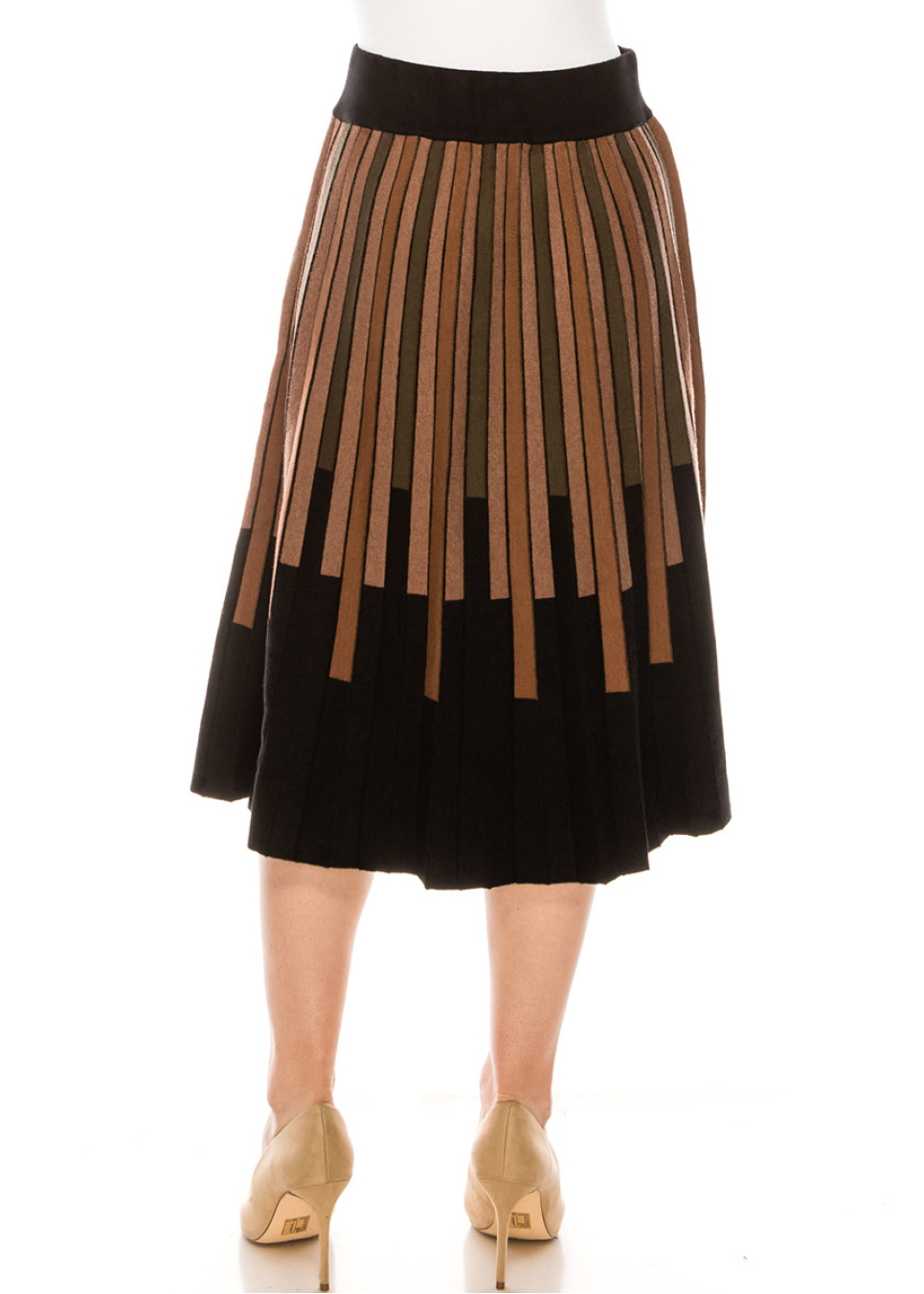 The beautifully pleated multi-colored skirt flatters the figure and swings with every step. The skirt's warmth and midi length make it ideal for fall, but it can be worn at any time of year. The waistband keeps everything in the place and makes the skirt very comfy and practical.