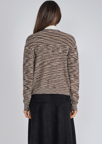 Multi-Hue Mystery: Abstract Print Cardigan with Buttons