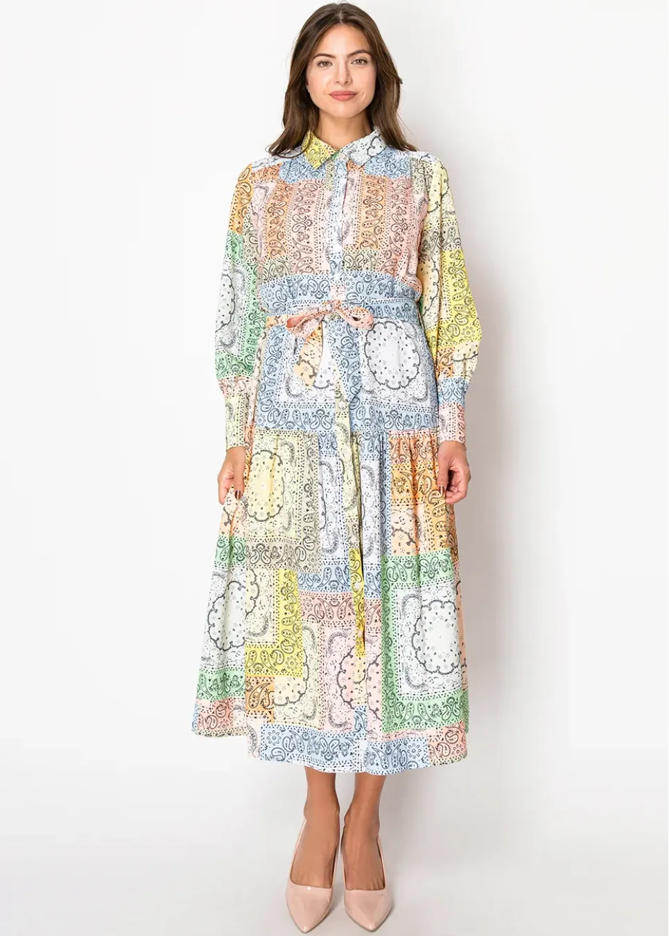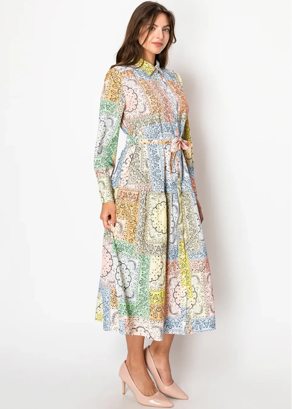 Amber & Rose Paisley Belted Shirt Dress