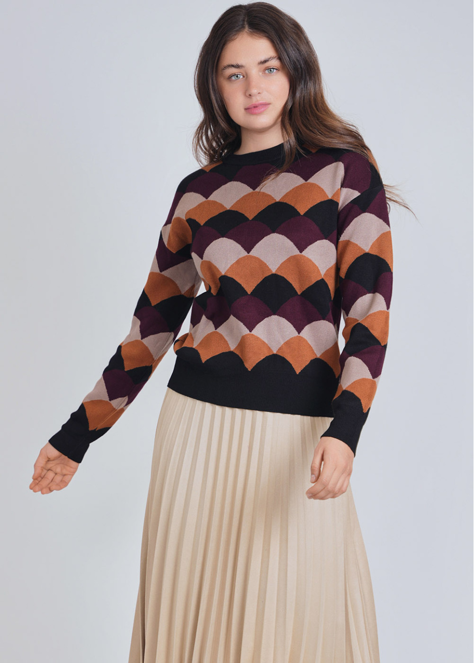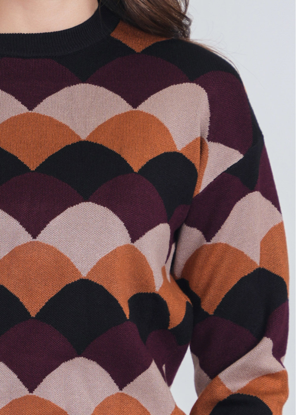 Multi-Hued Sweater with a Hint of Mosaic Design