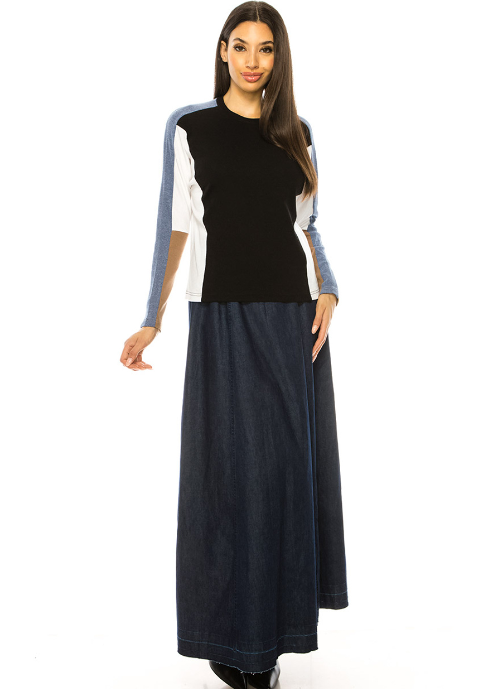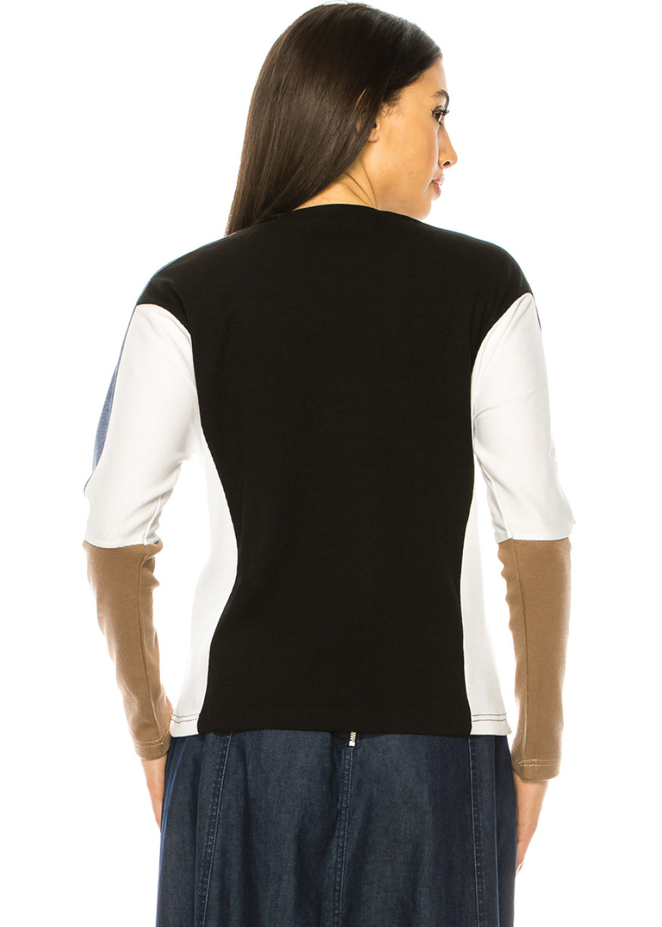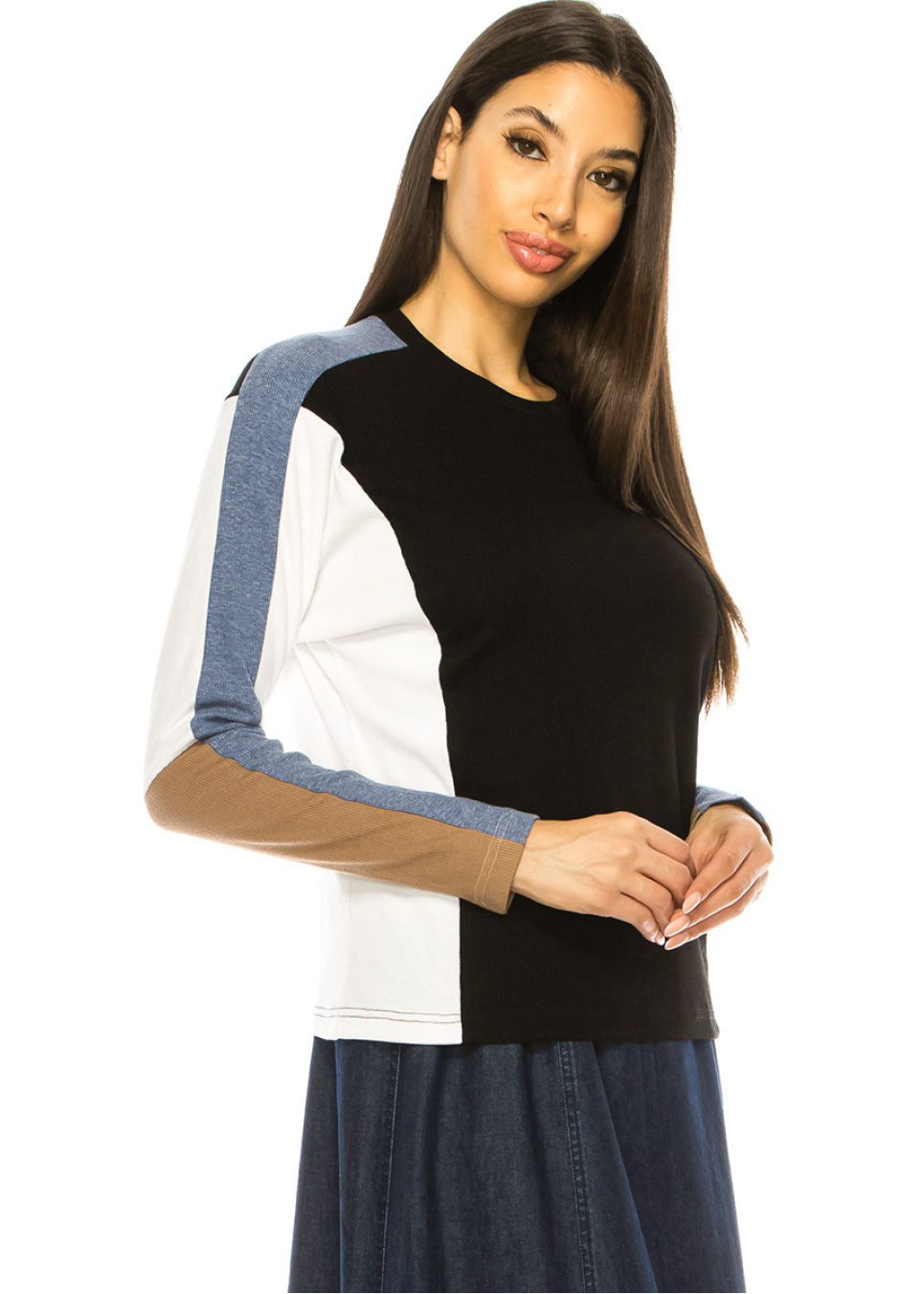 This versatile long sleeve color block t-shirt is perfect for any wardrobe. The combination of shades is easy to pair with any outfit, while the long sleeves add versatility. This shirt is perfect for those who want a piece that they can wear year-round.