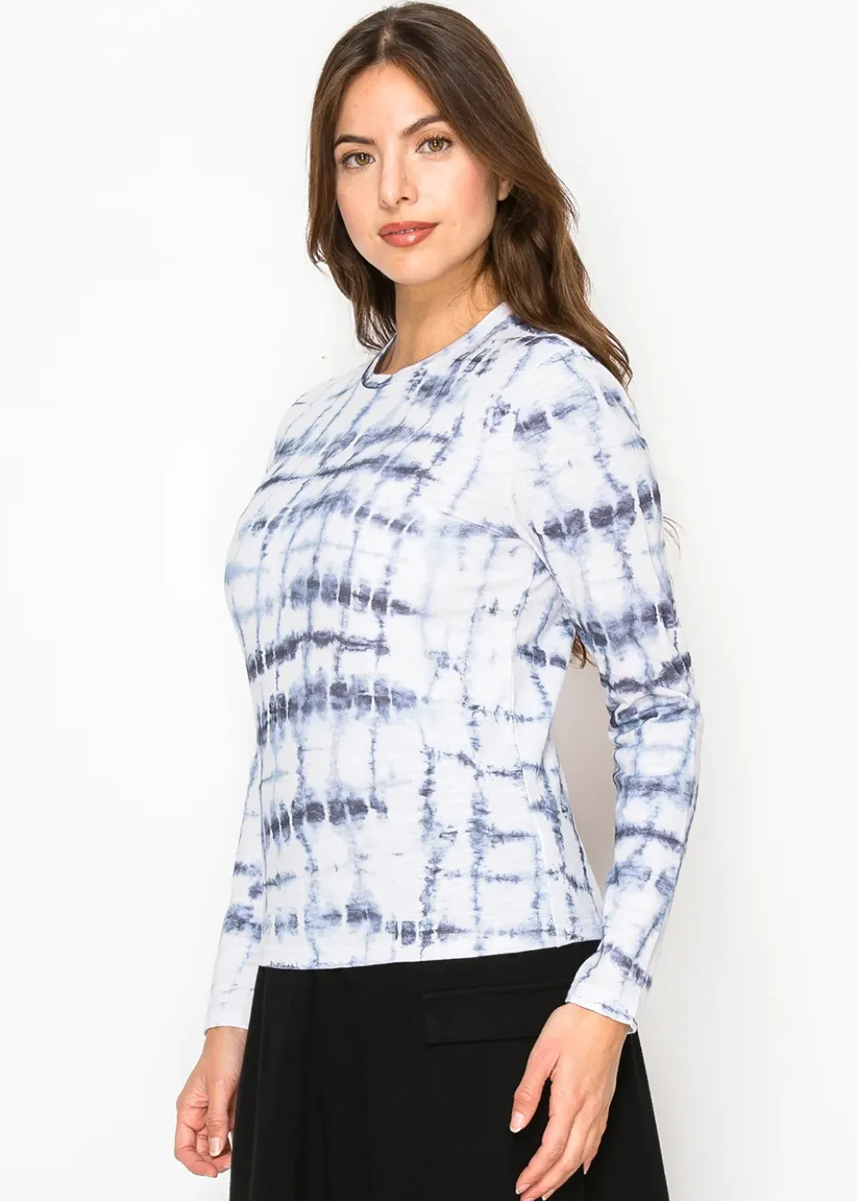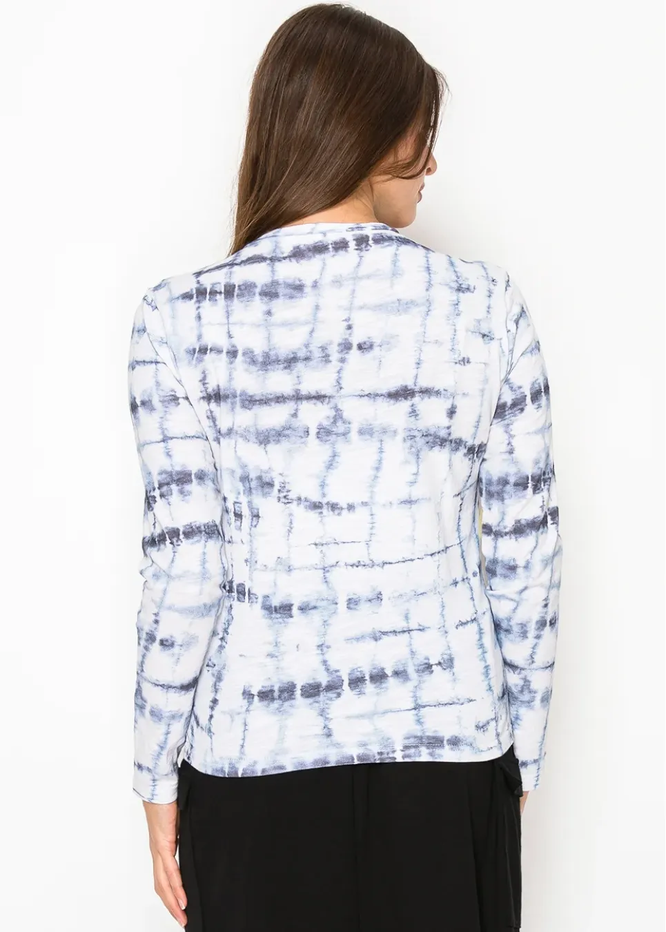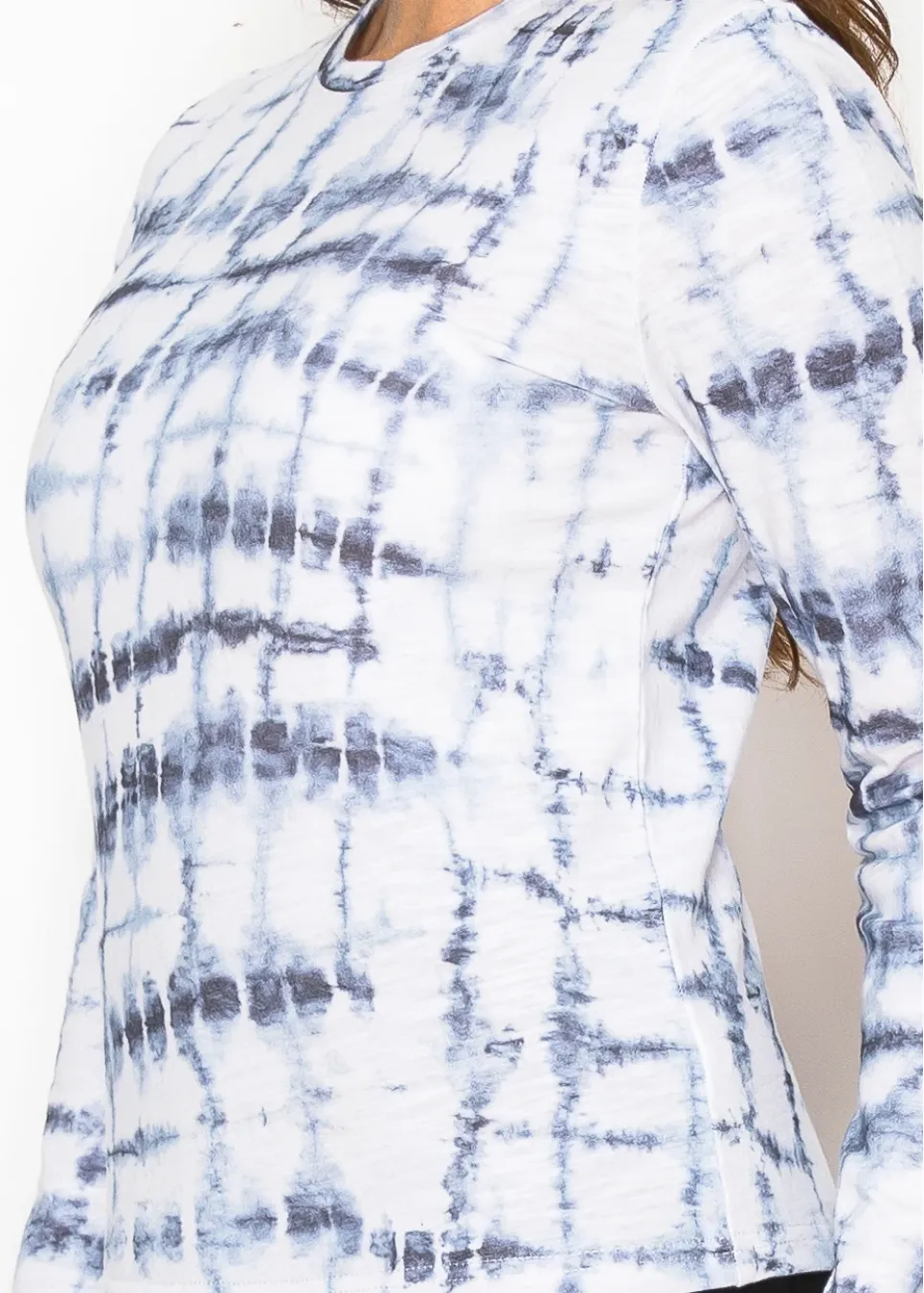 A timeless tee with a modern, artistic touch. The subtle navy and white tie-dye pattern makes this long-sleeve shirt a standout while keeping it simple and wearable for any occasion.