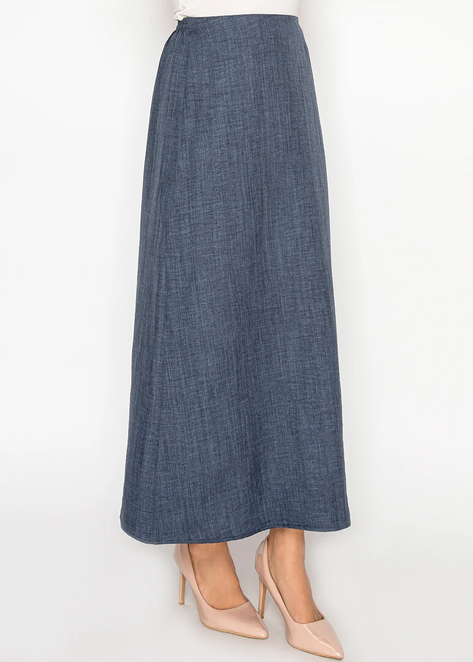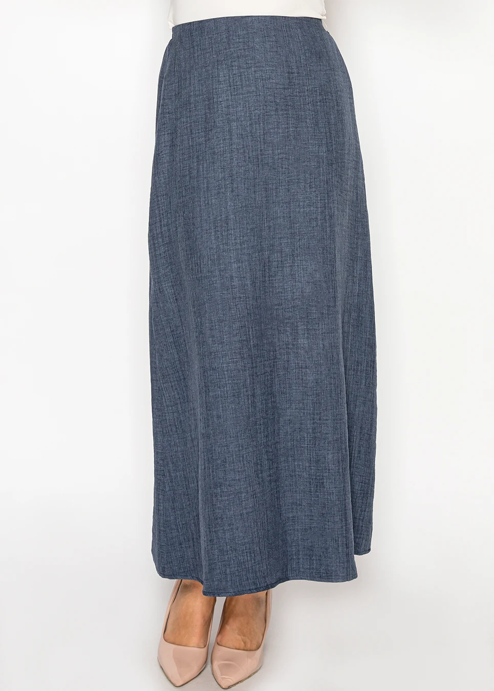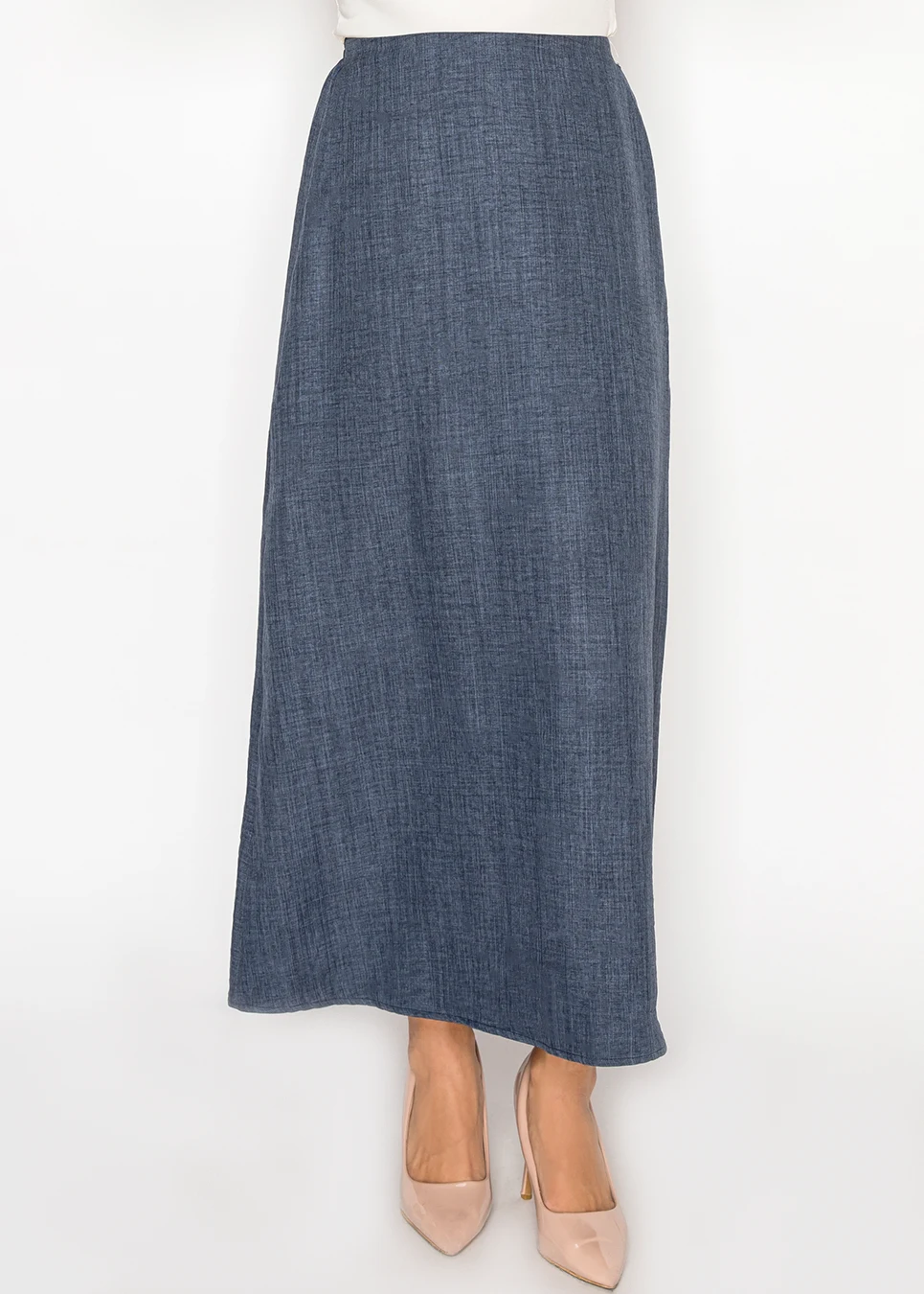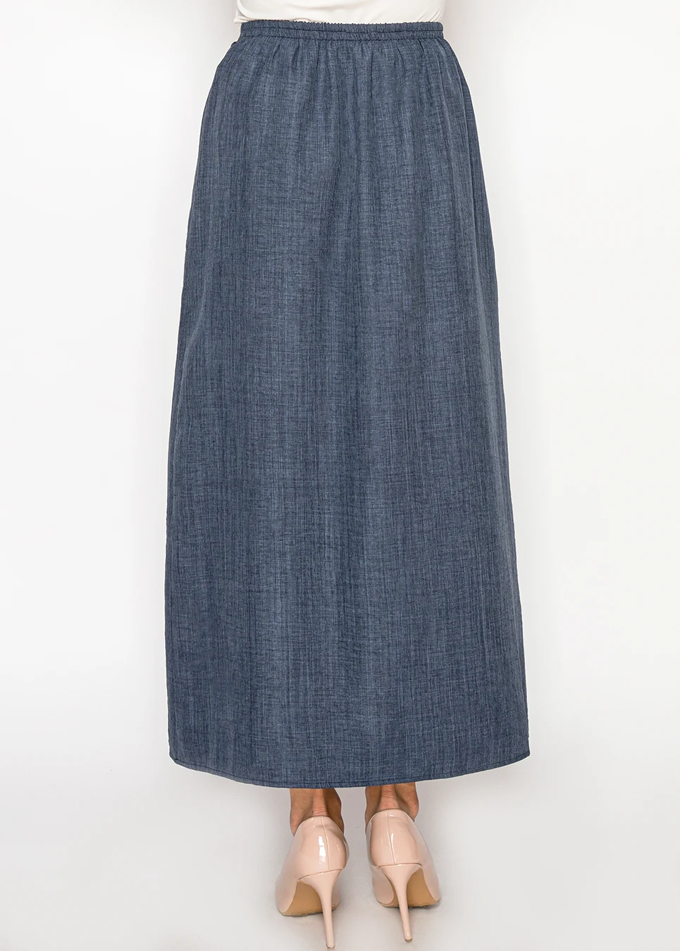 Navy Chambray Maxi Skirt with Elasticated Waist