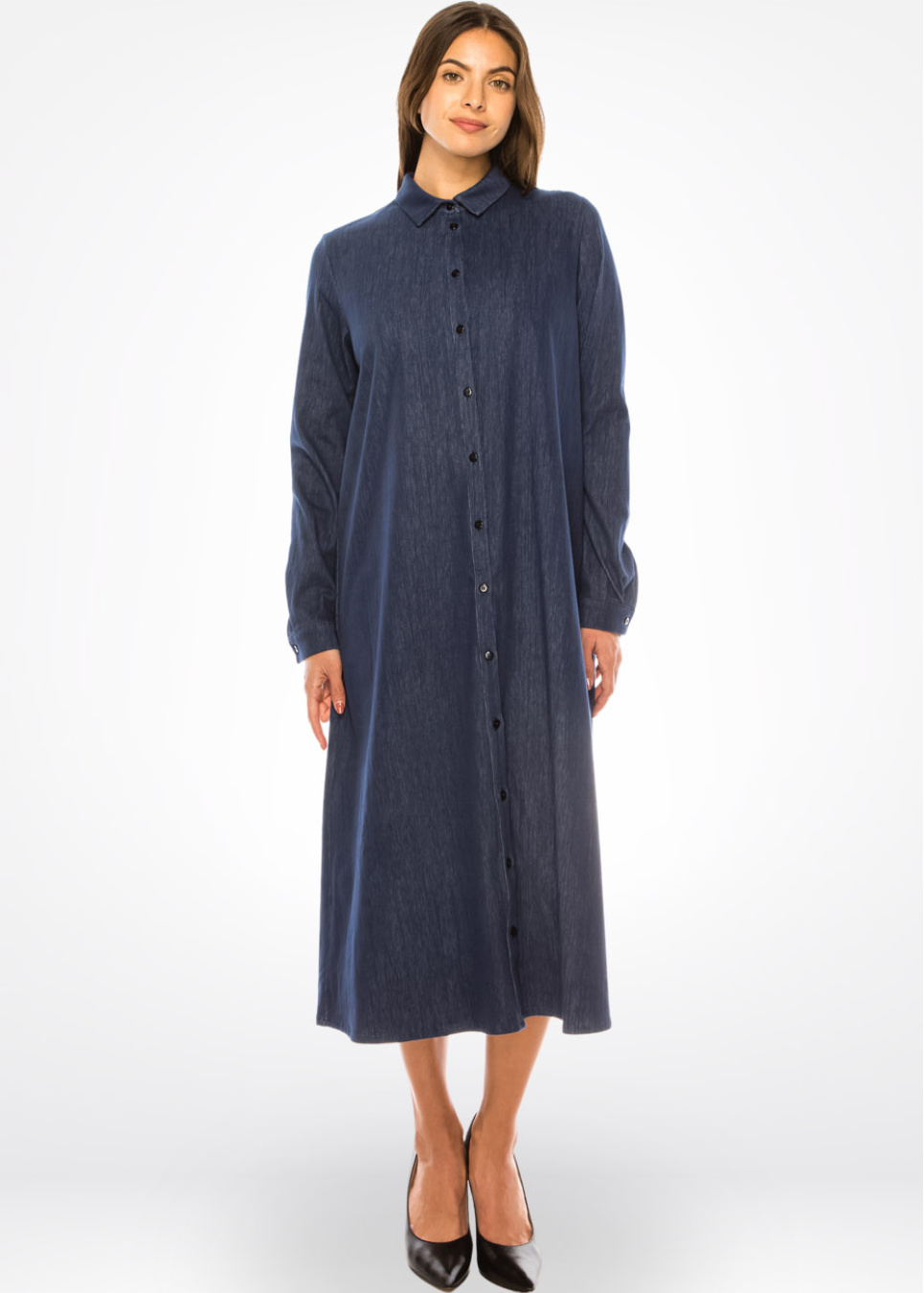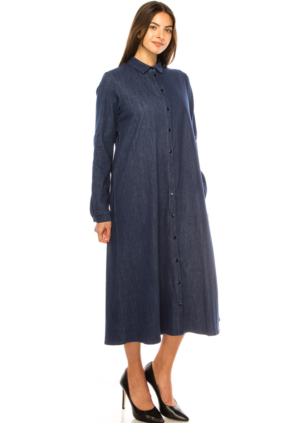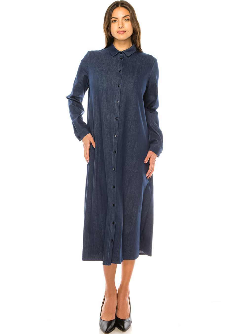 Navy Denim Classic Midi Dress