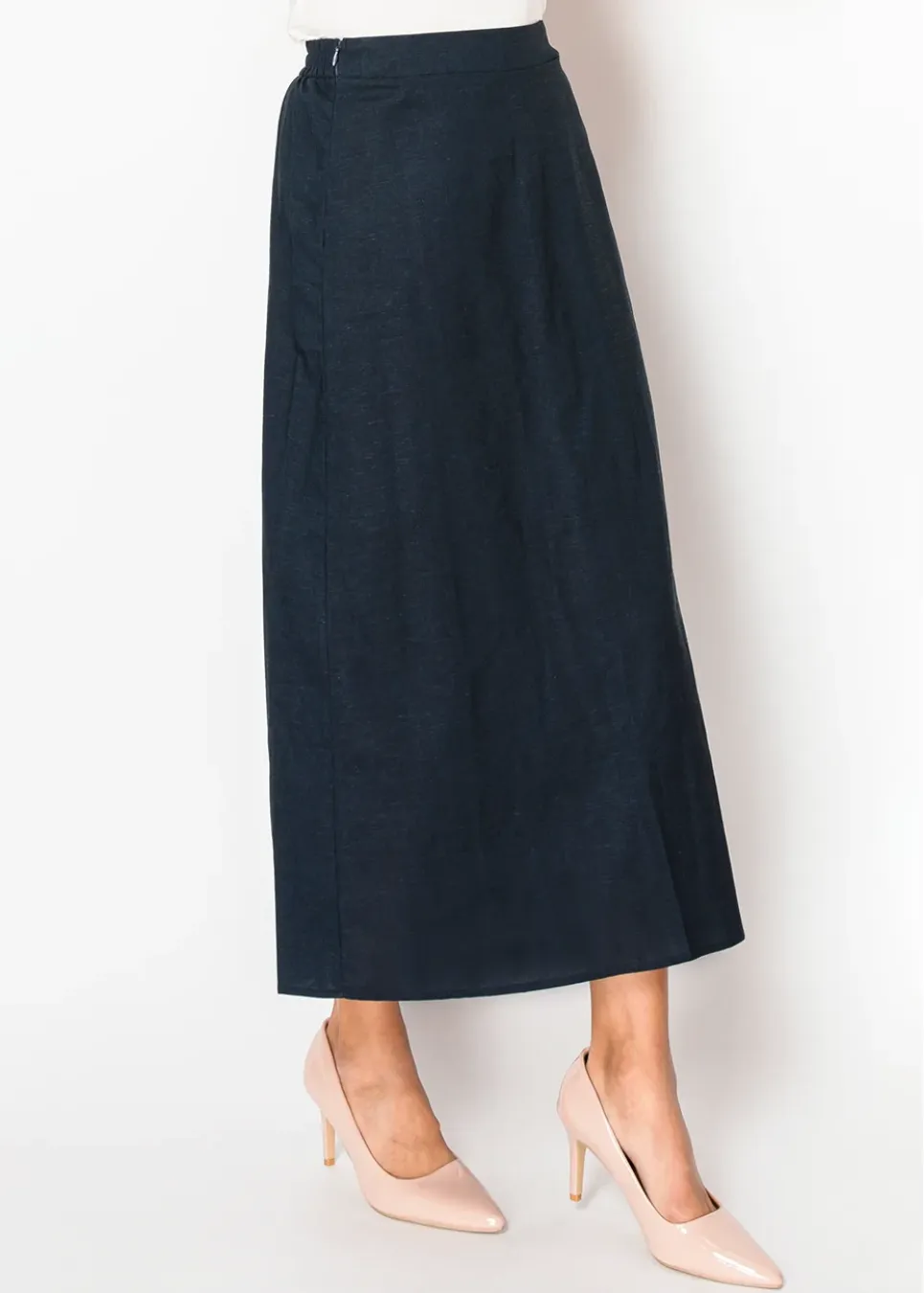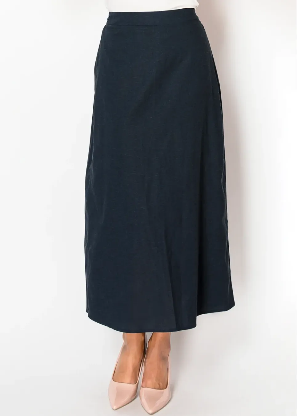 Navy Linen A-Line Skirt