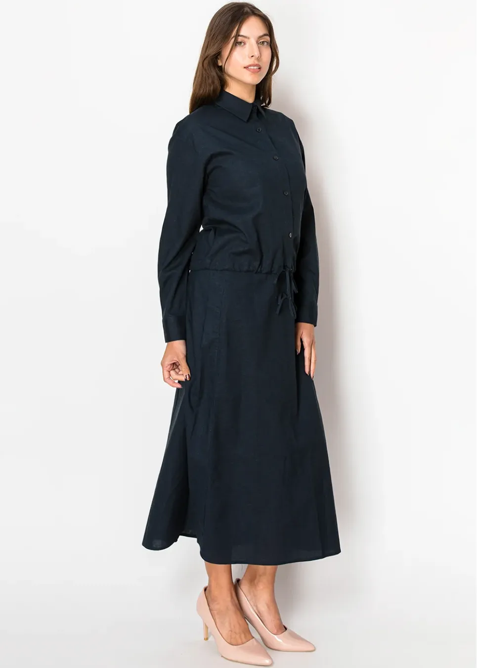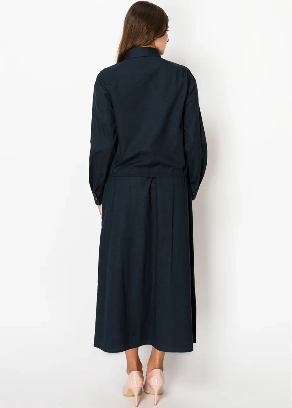 Light and breathable, this navy linen skirt is a timeless addition to your wardrobe. The A-line silhouette offers effortless movement, while the classic color makes it easy to pair with any top.