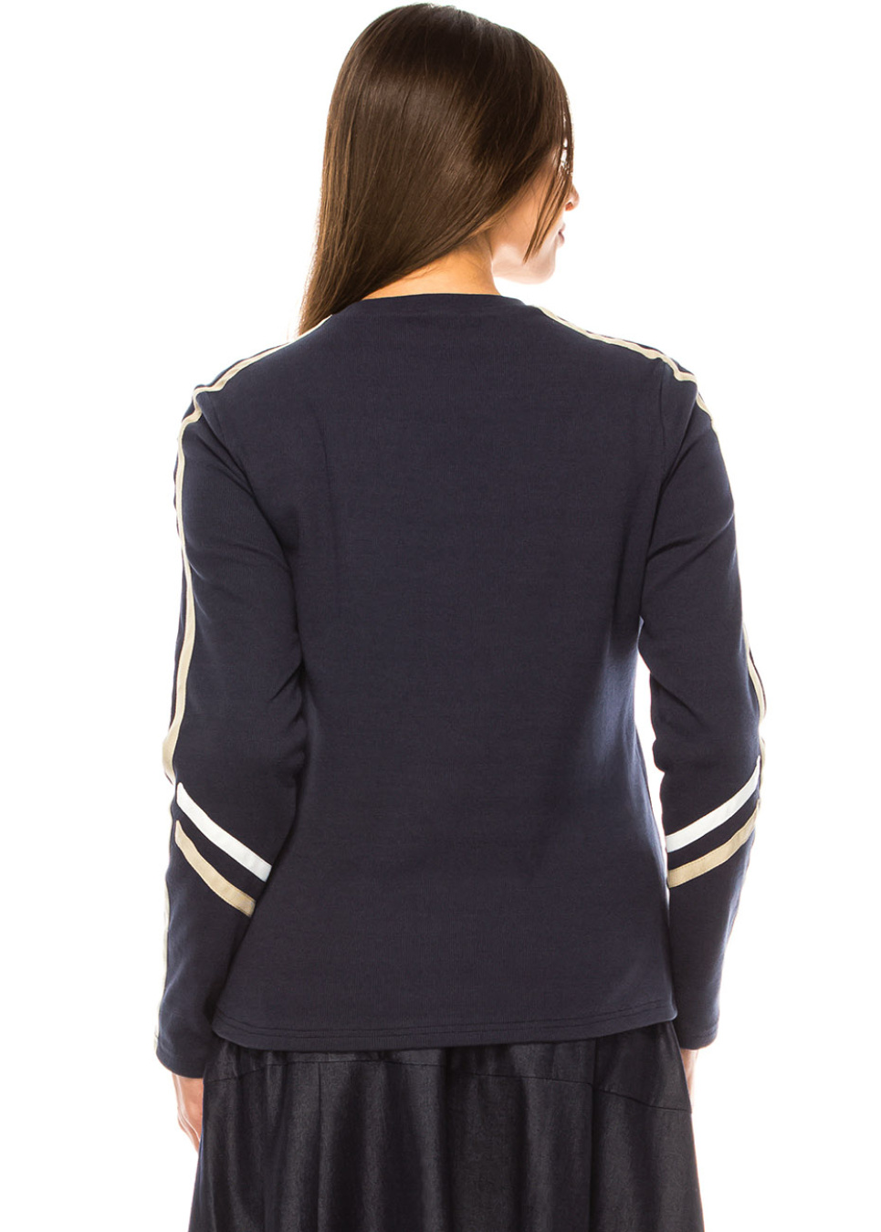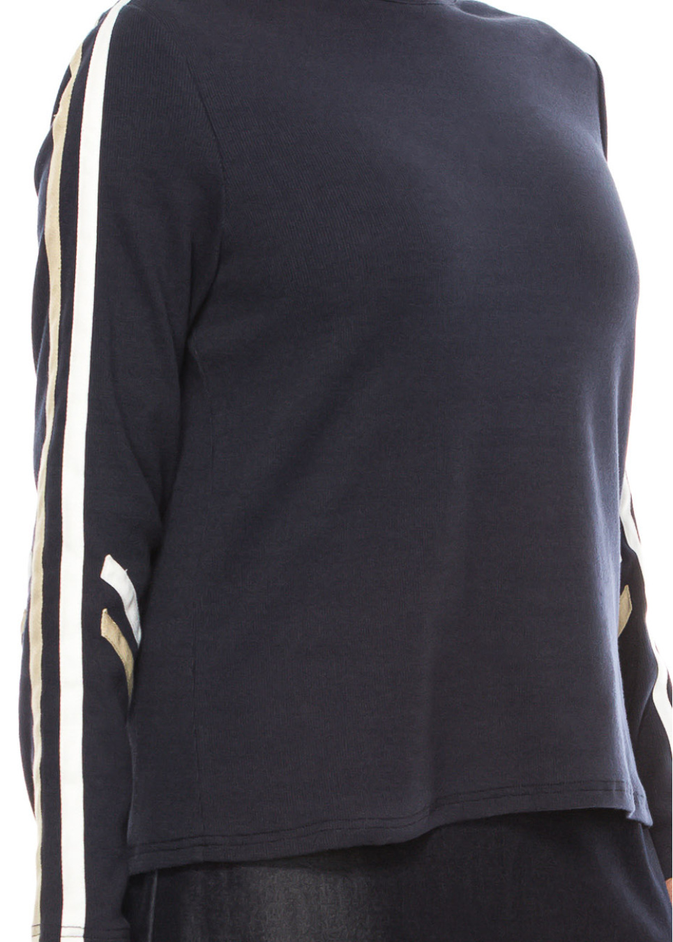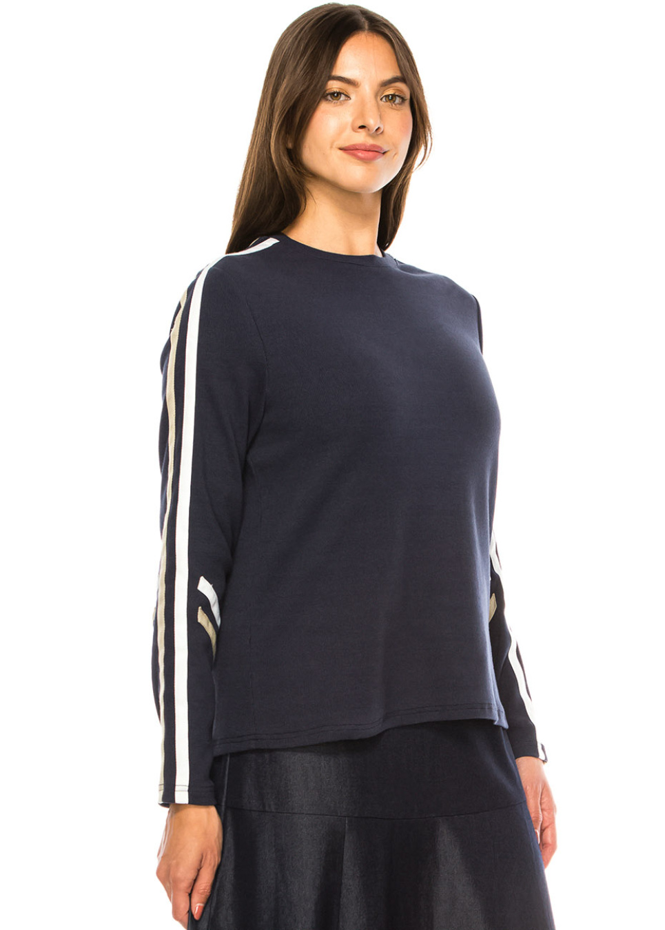 Navy Serenity Striped-Sleeve Knit T-Shirt