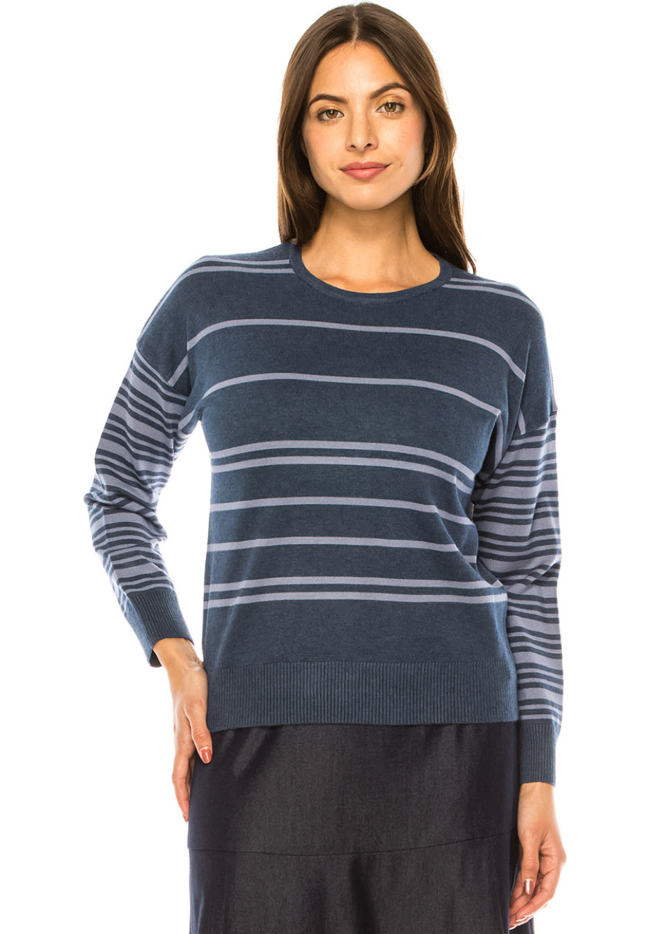 Navy Striped Knit Sweater – Classic Comfort