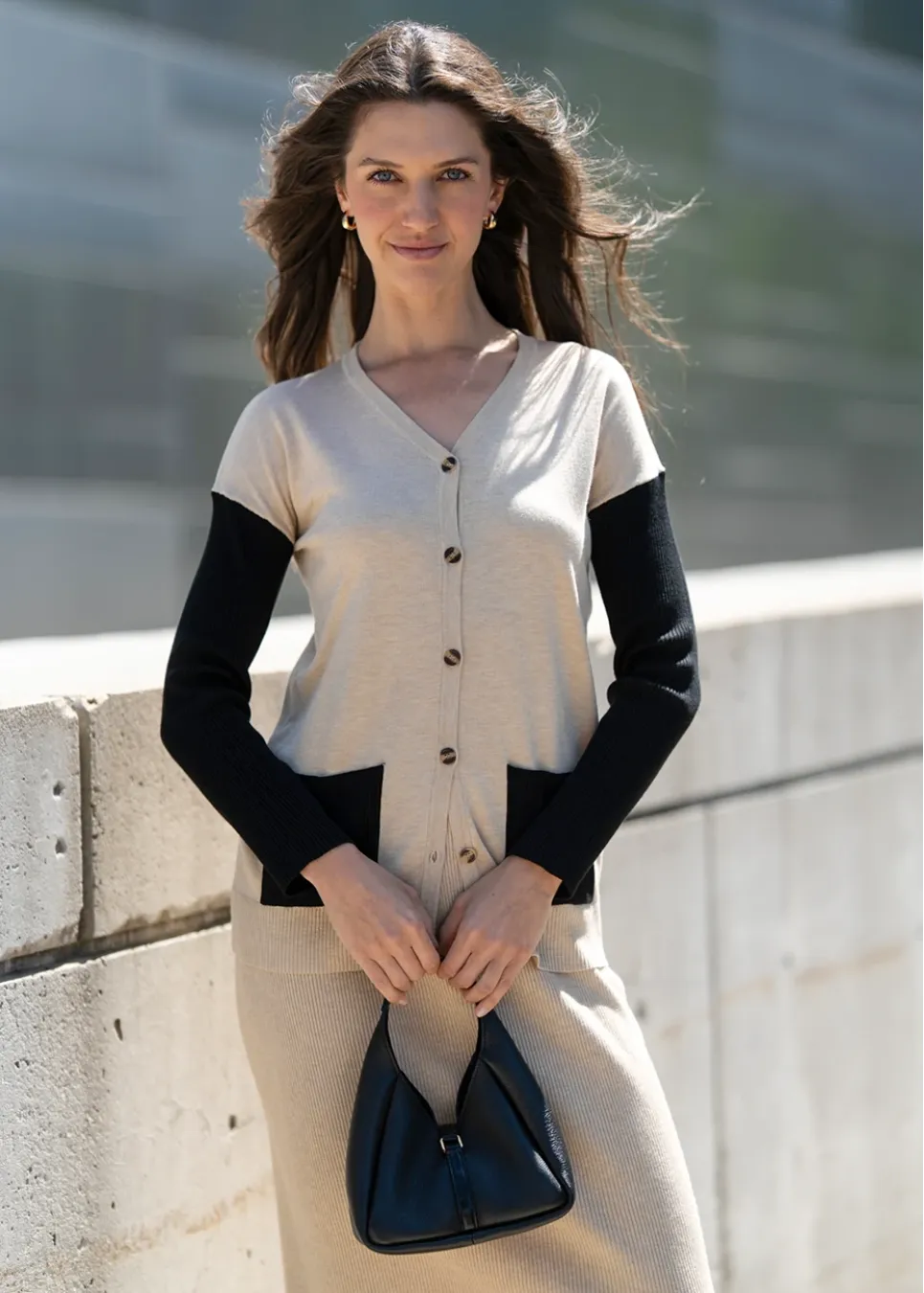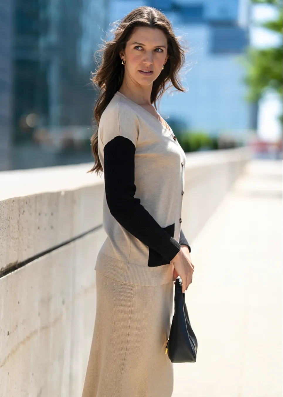 Oatmeal and Black Knit Cardigan & Skirt Set