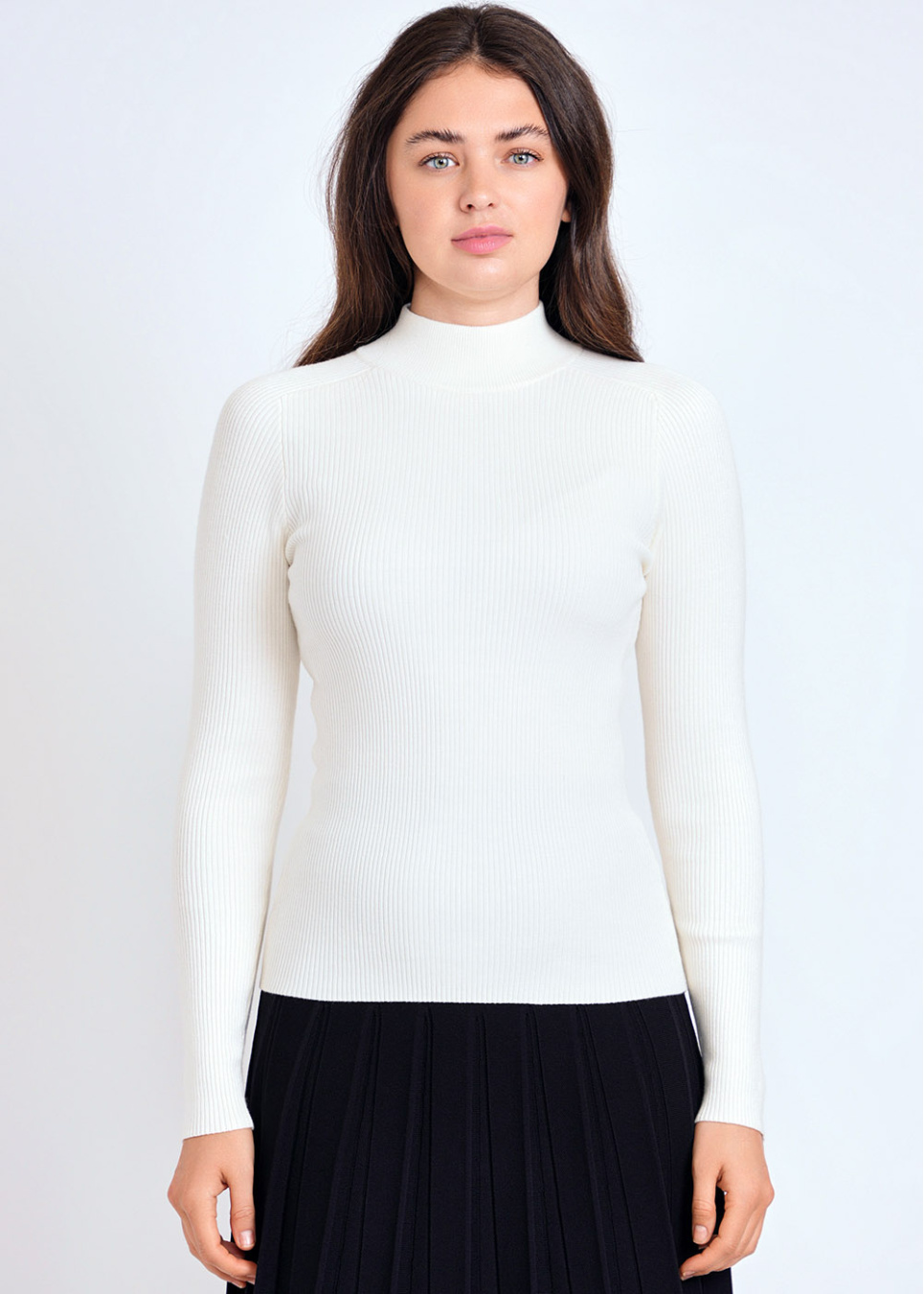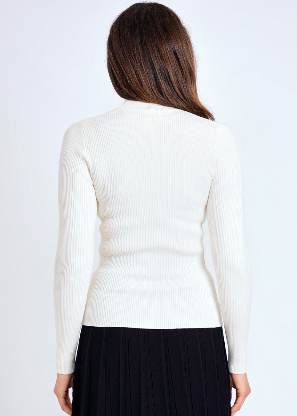 Off White High Neck Ribbed Fitted Sweater