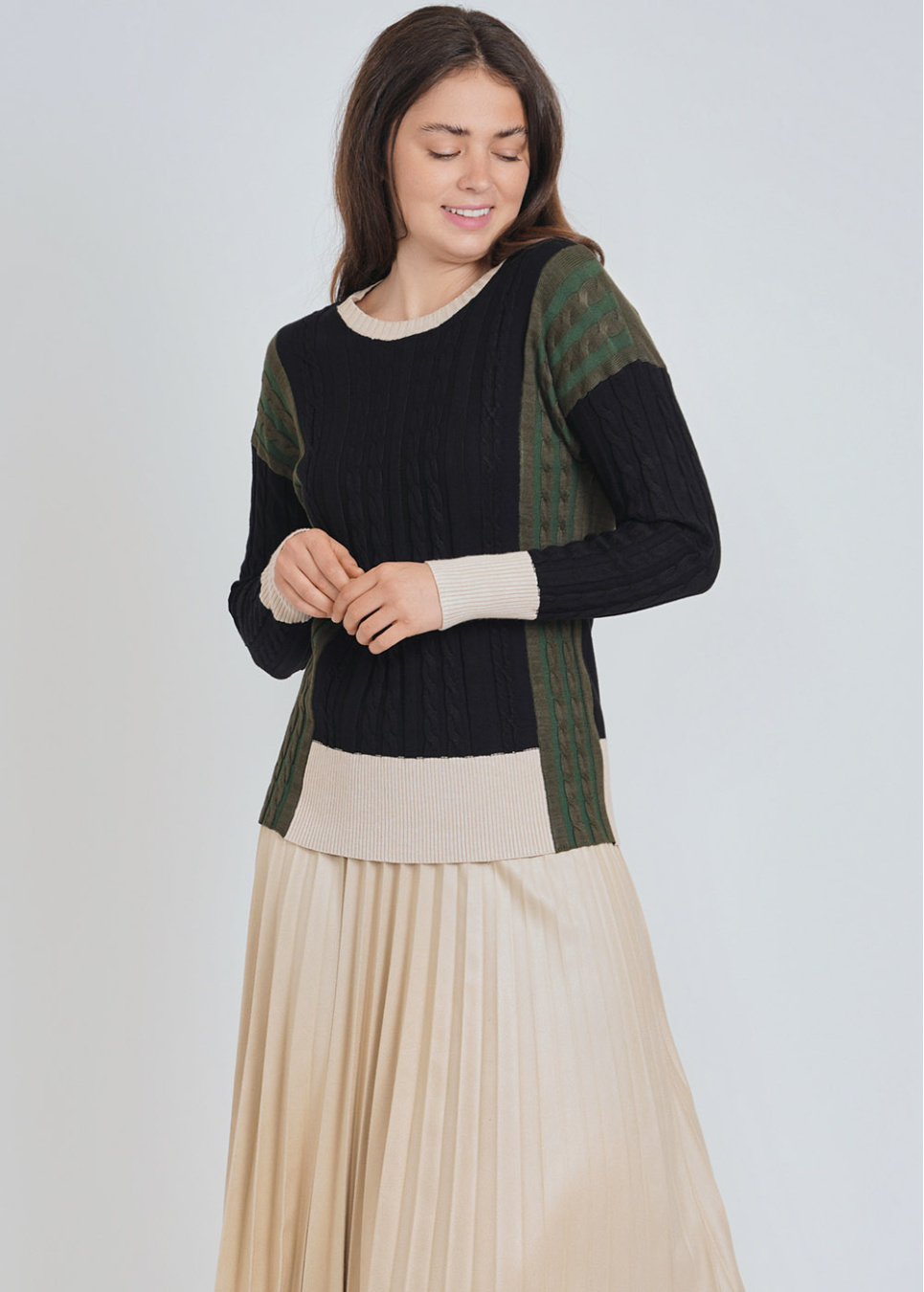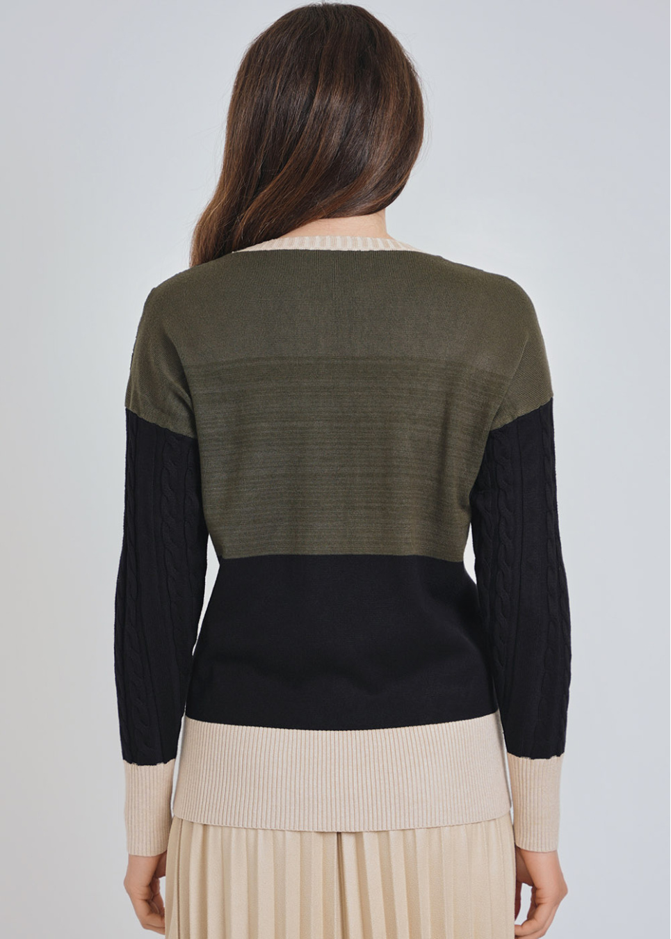 Blue and Olive Dip-Dye Cardigan with Buttons
