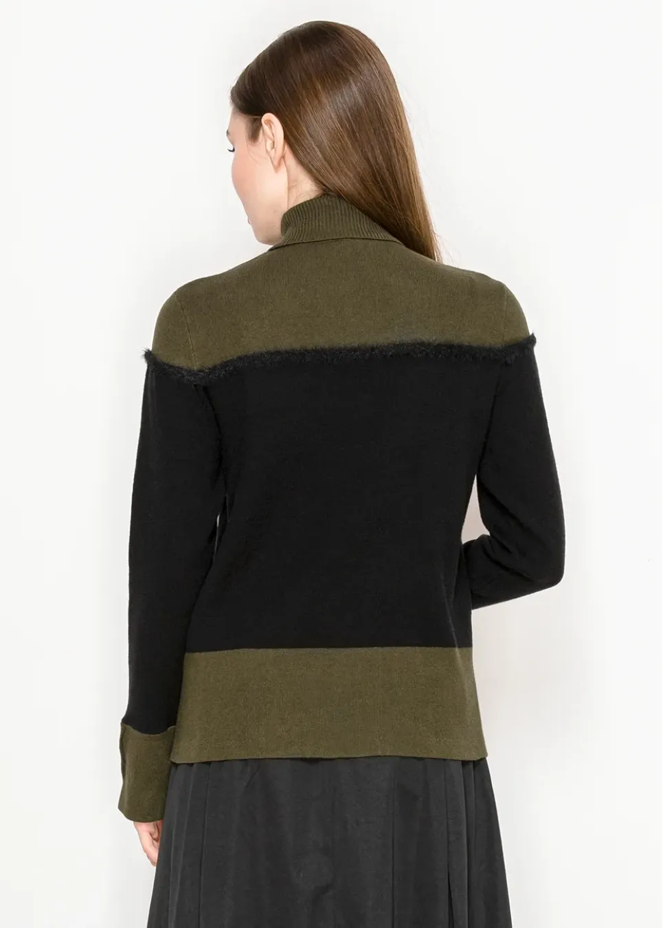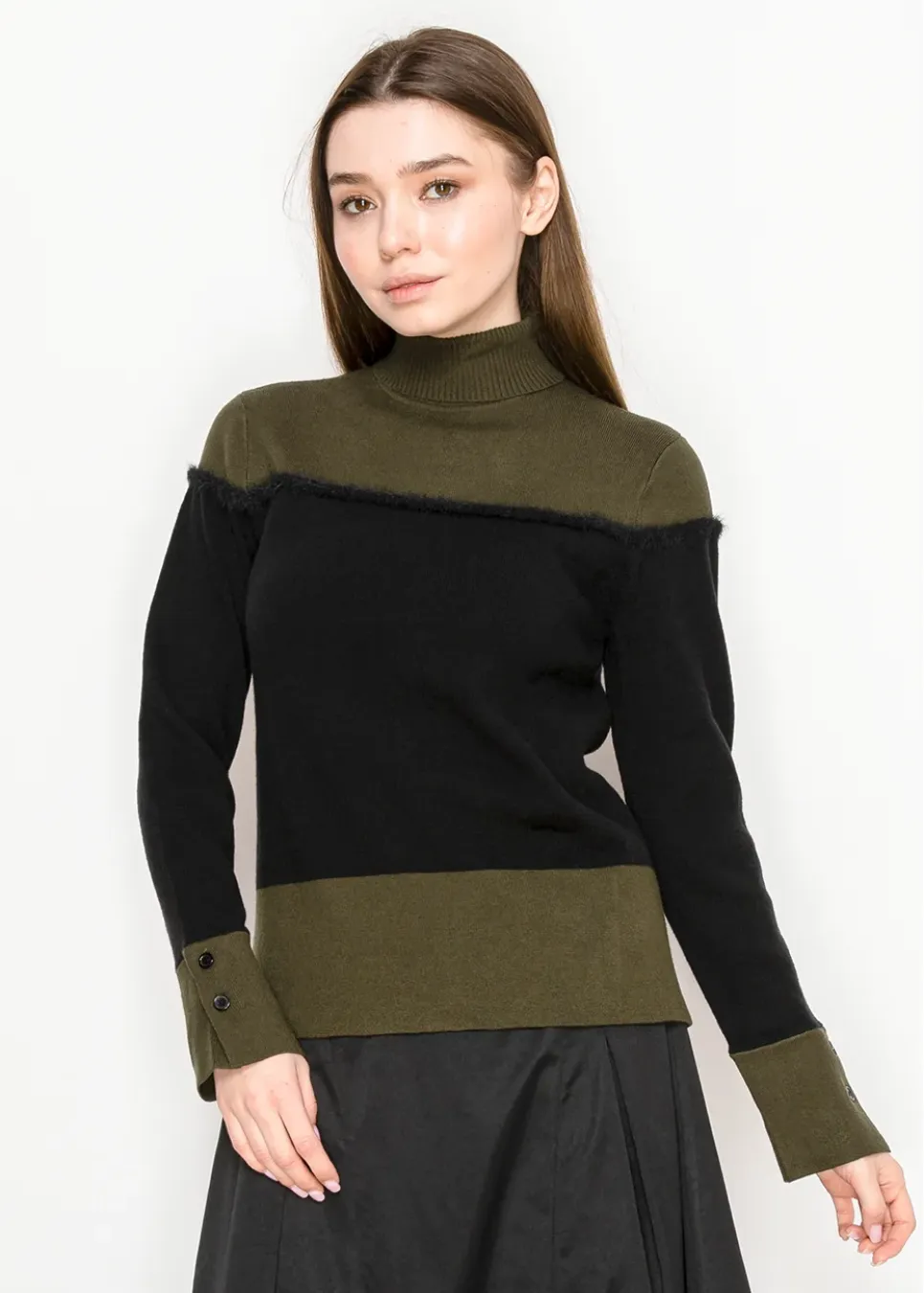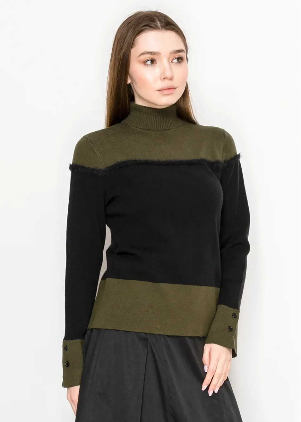 Olive and Black Colorblock Turtleneck Sweater