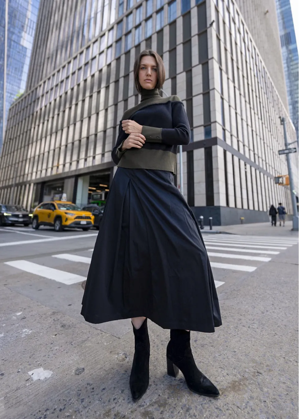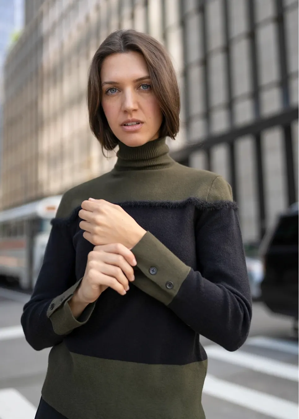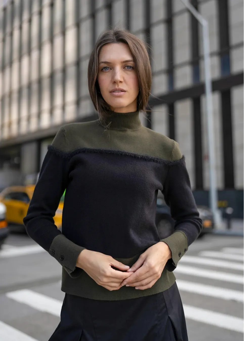 Olive and Black Colorblock Turtleneck Sweater