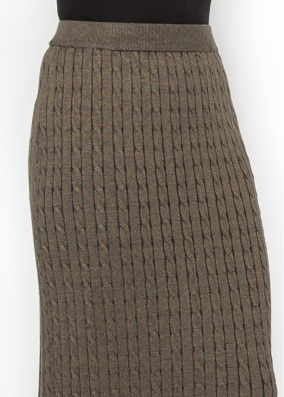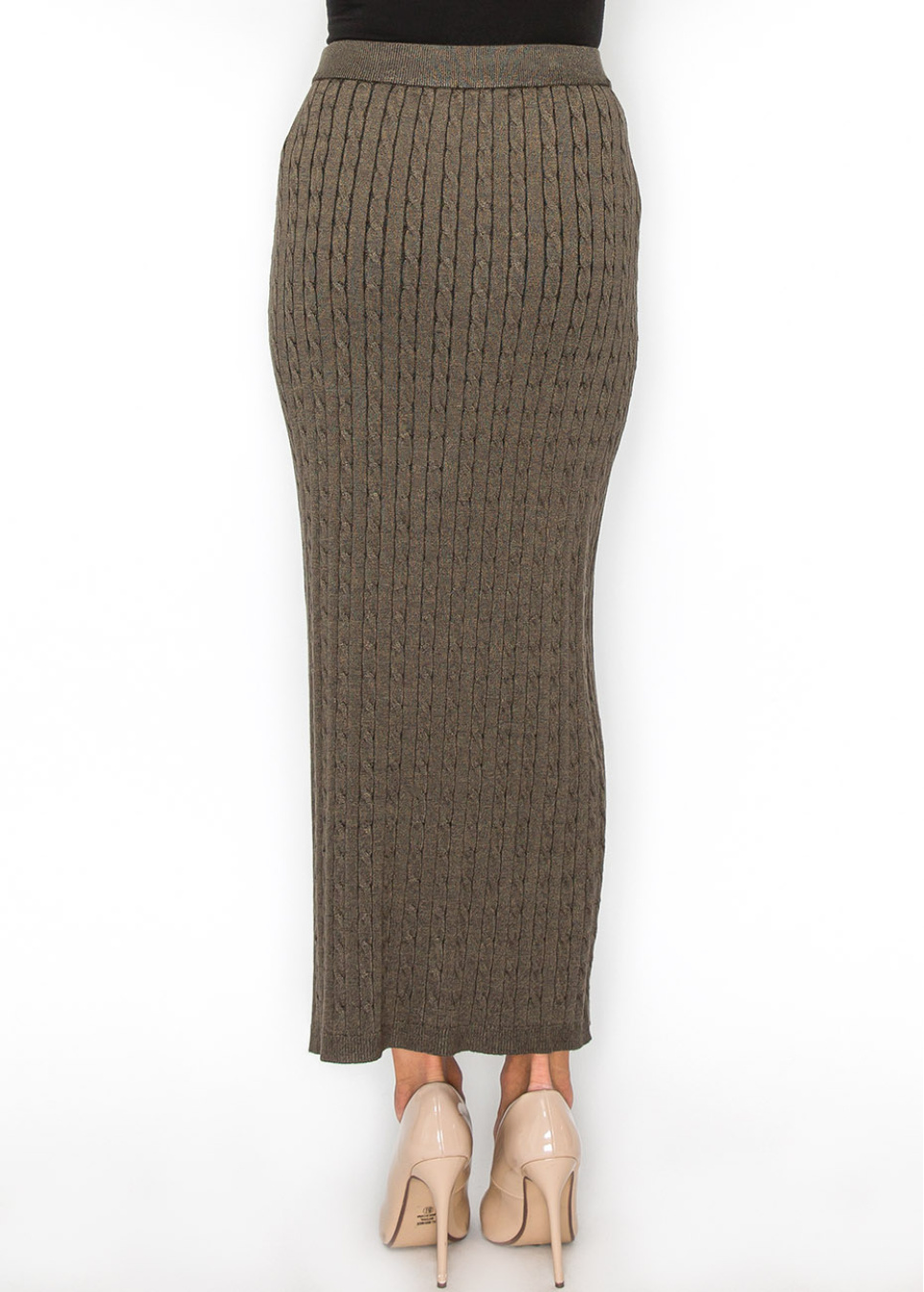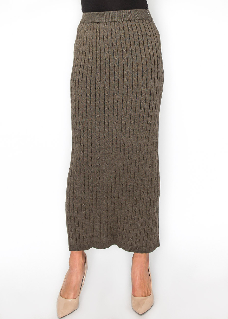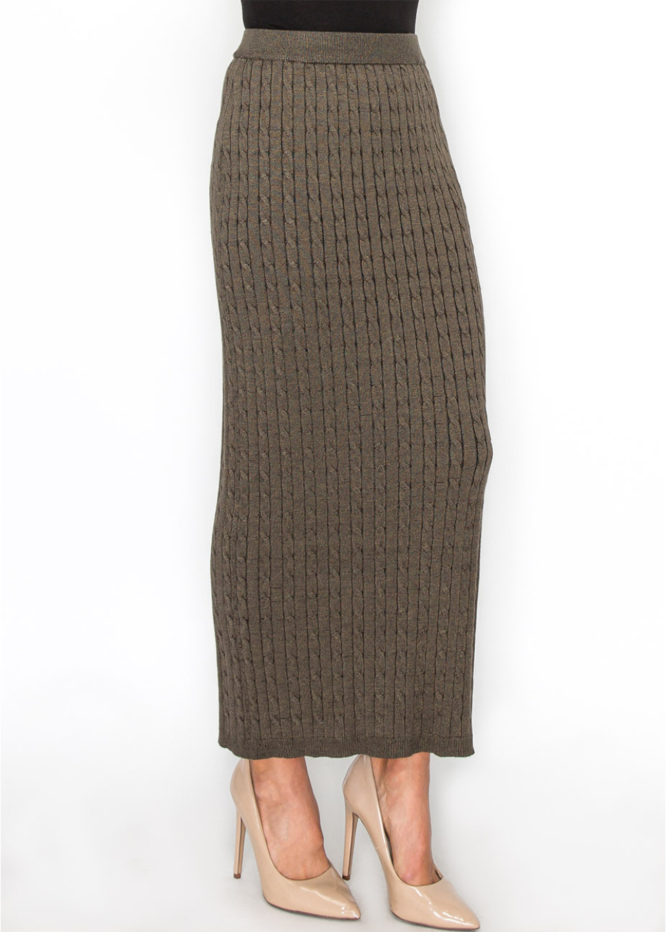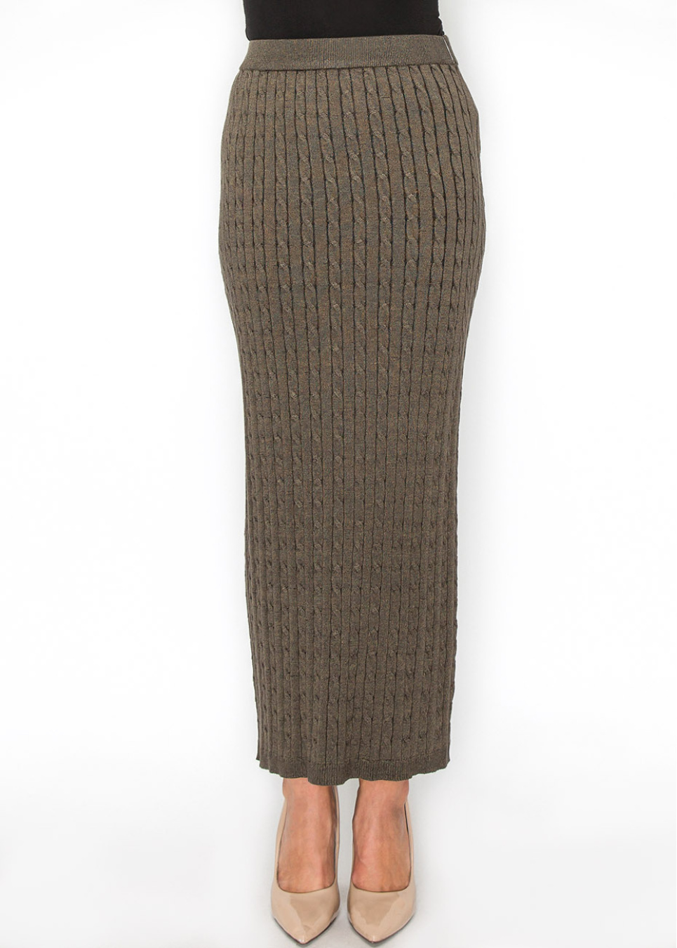 Olive Cable-Knit Maxi Skirt