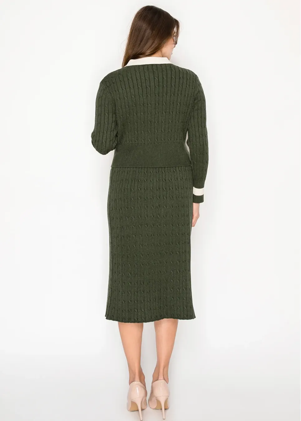Olive Cable Knit Matching Set