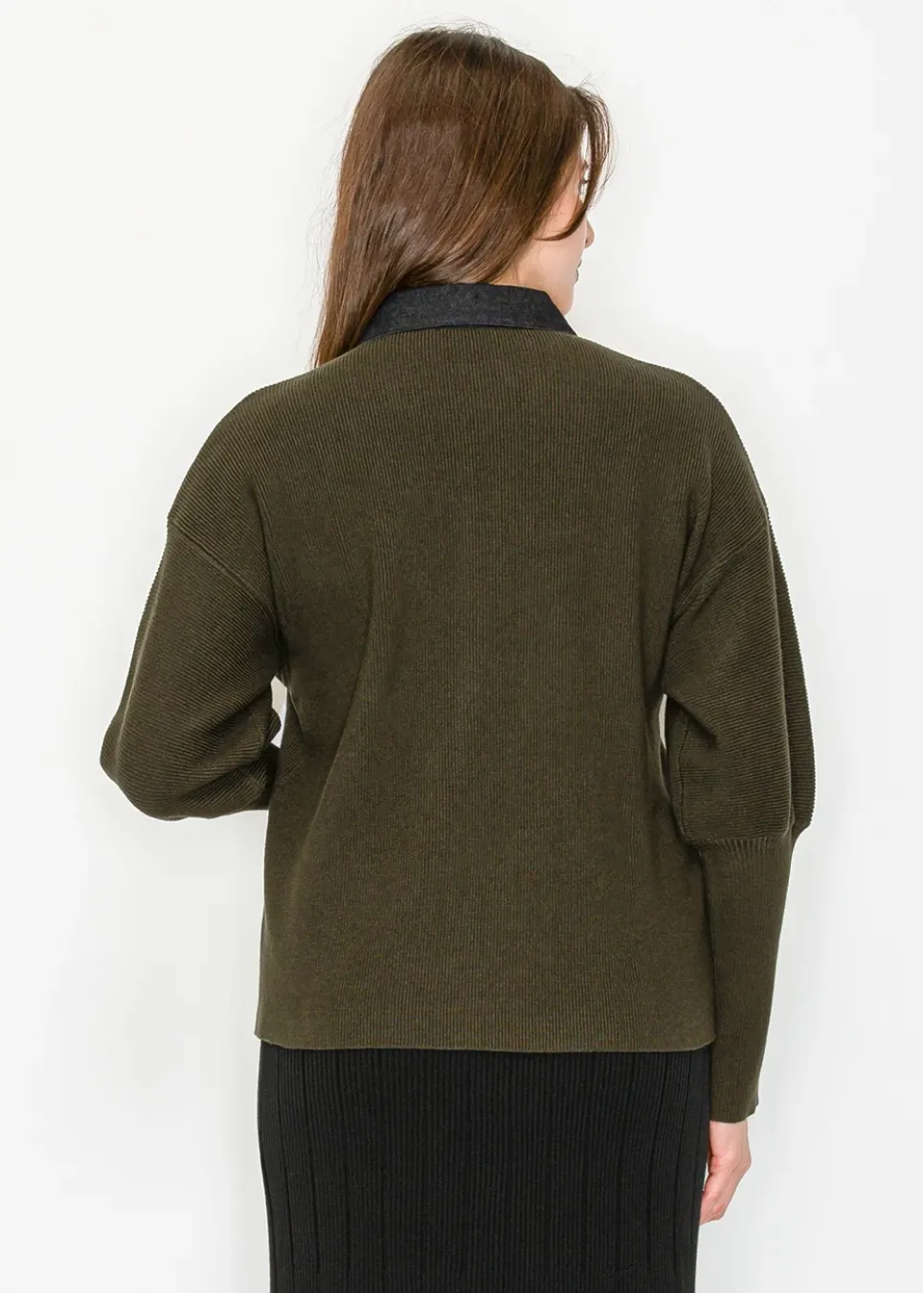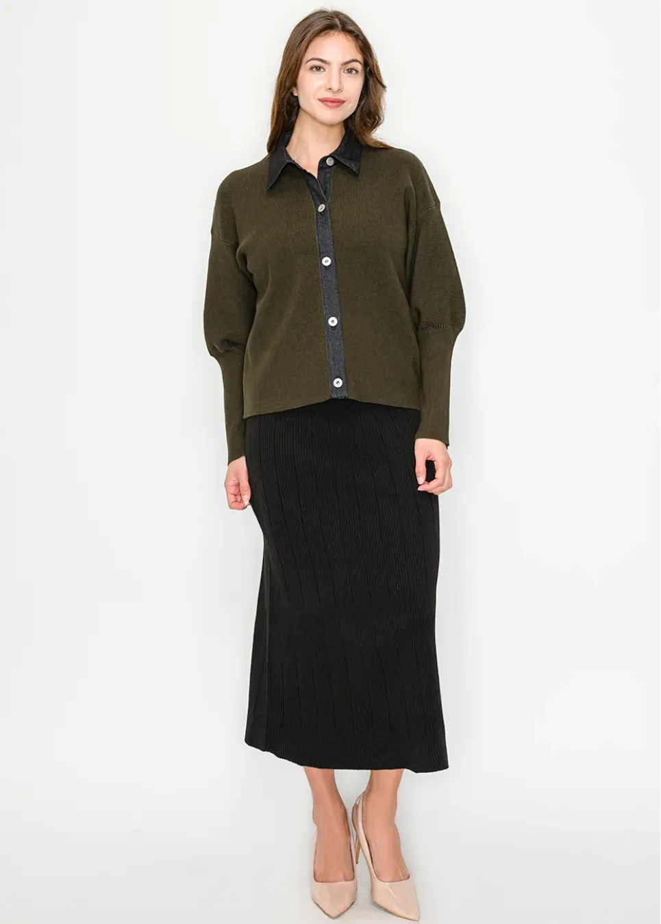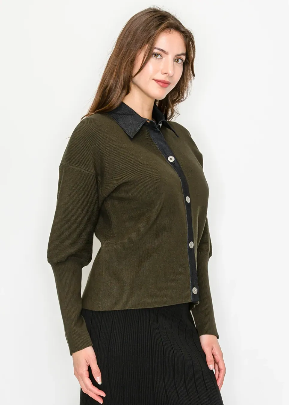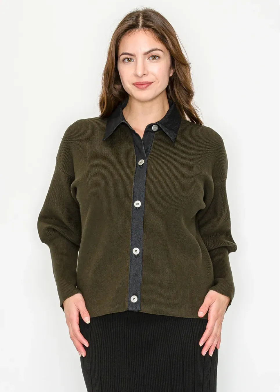 Blue and Olive Dip-Dye Cardigan with Buttons