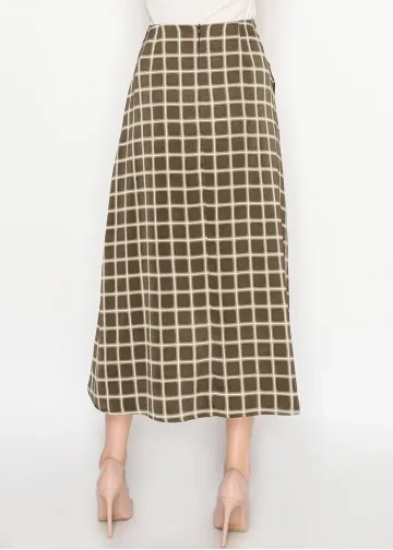 A polished take on pattern and texture, this skirt combines a refined grid motif with a softly gathered front. Elegant and versatile, it’s designed to stand out with ease.