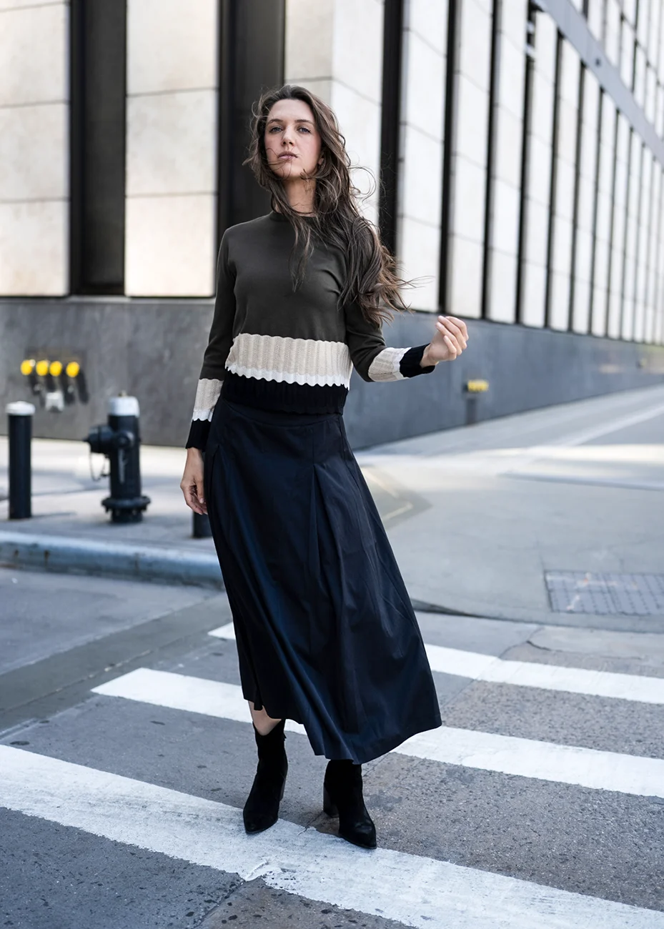 Refined yet relaxed, this pairing feels polished without trying. The lightweight knit and breezy skirt move effortlessly from day errands to dinner plans.