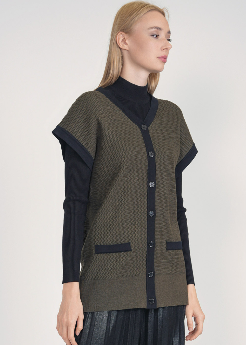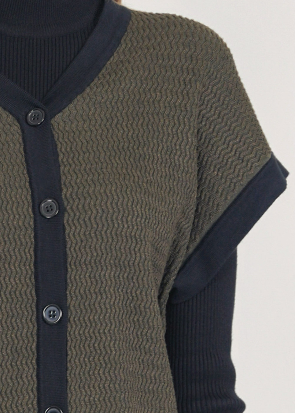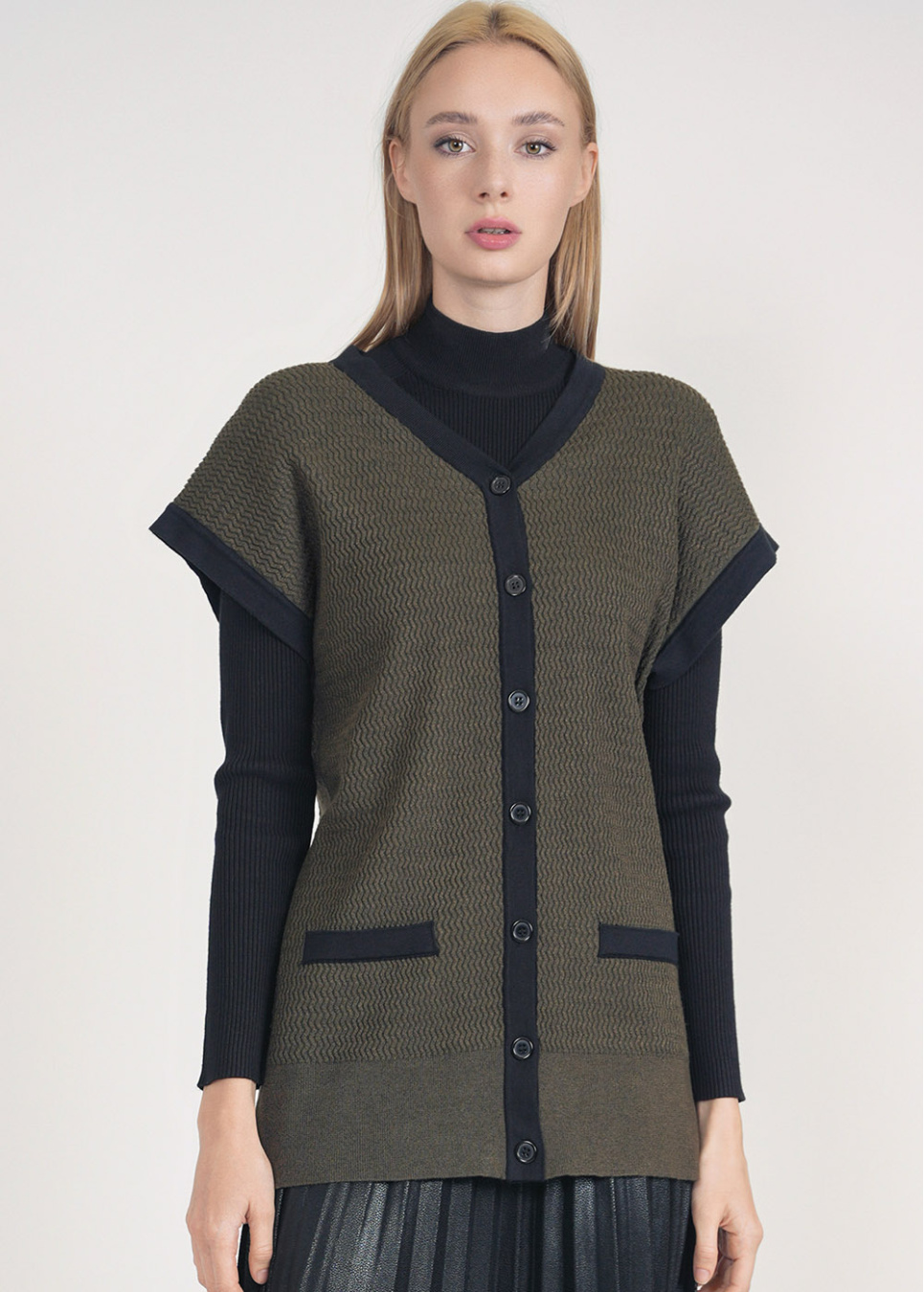 Blue and Olive Dip-Dye Cardigan with Buttons