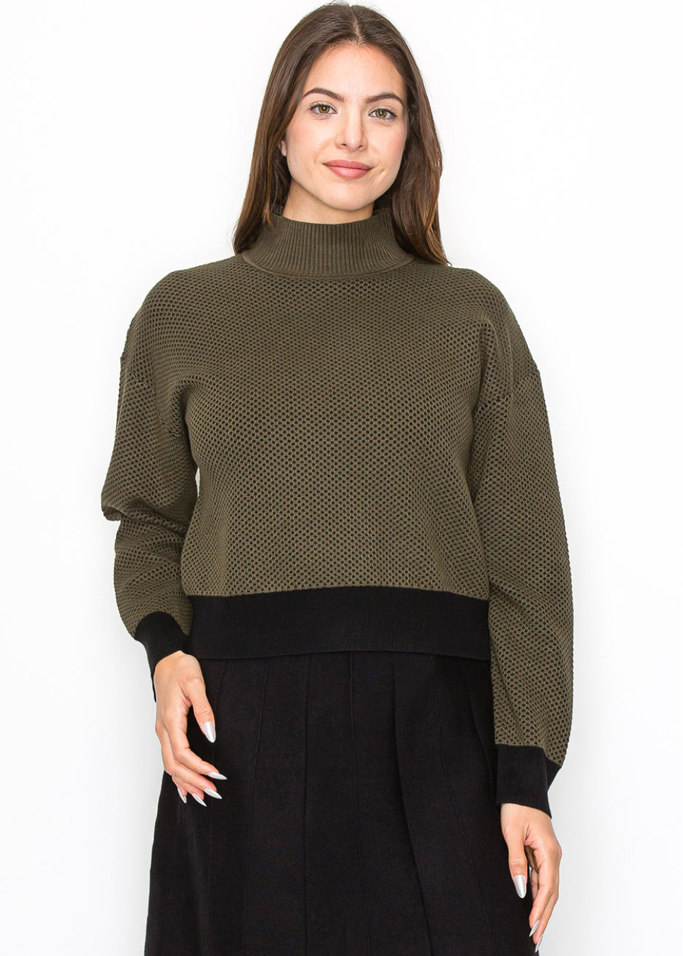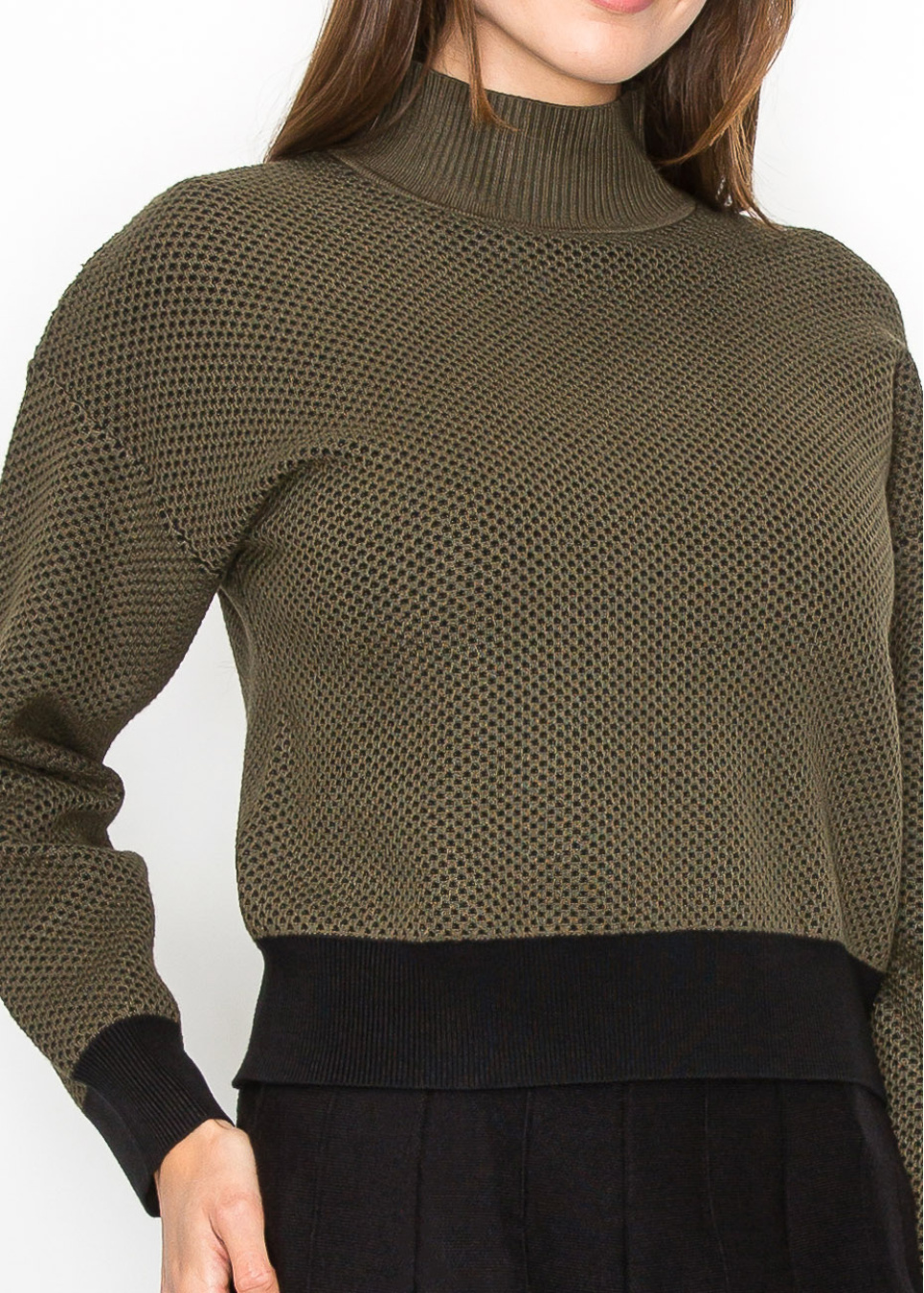 Two-Tone Olive and Black High Neck Sweater