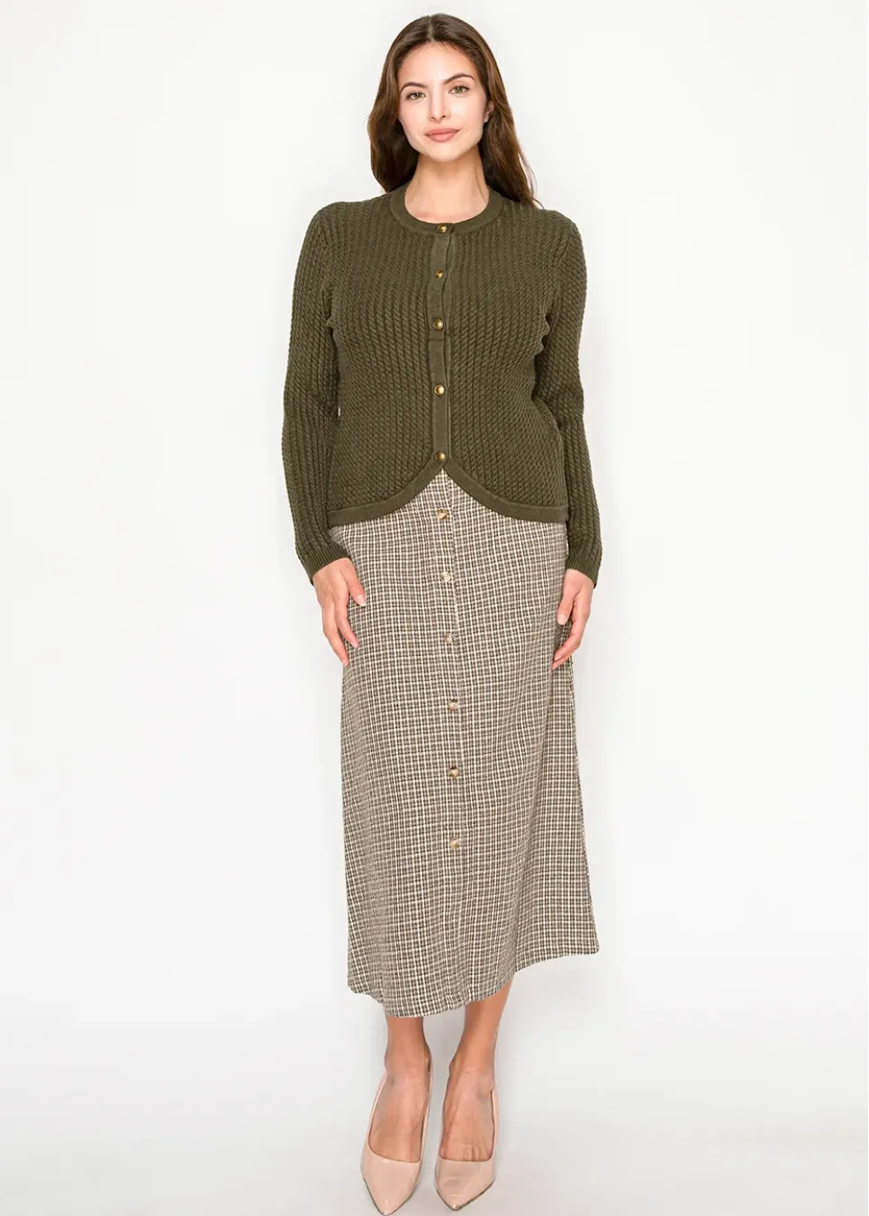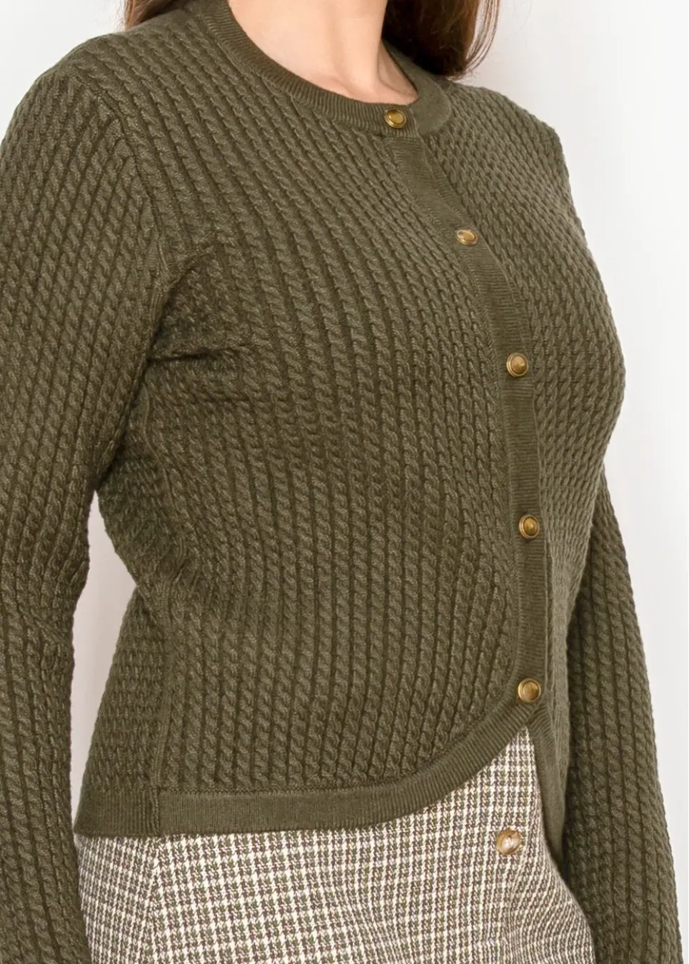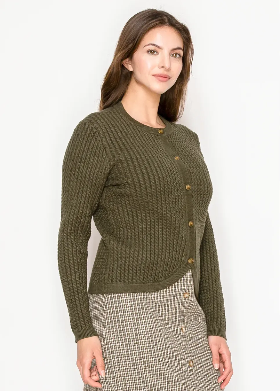 Olive Trim Check Cardigan