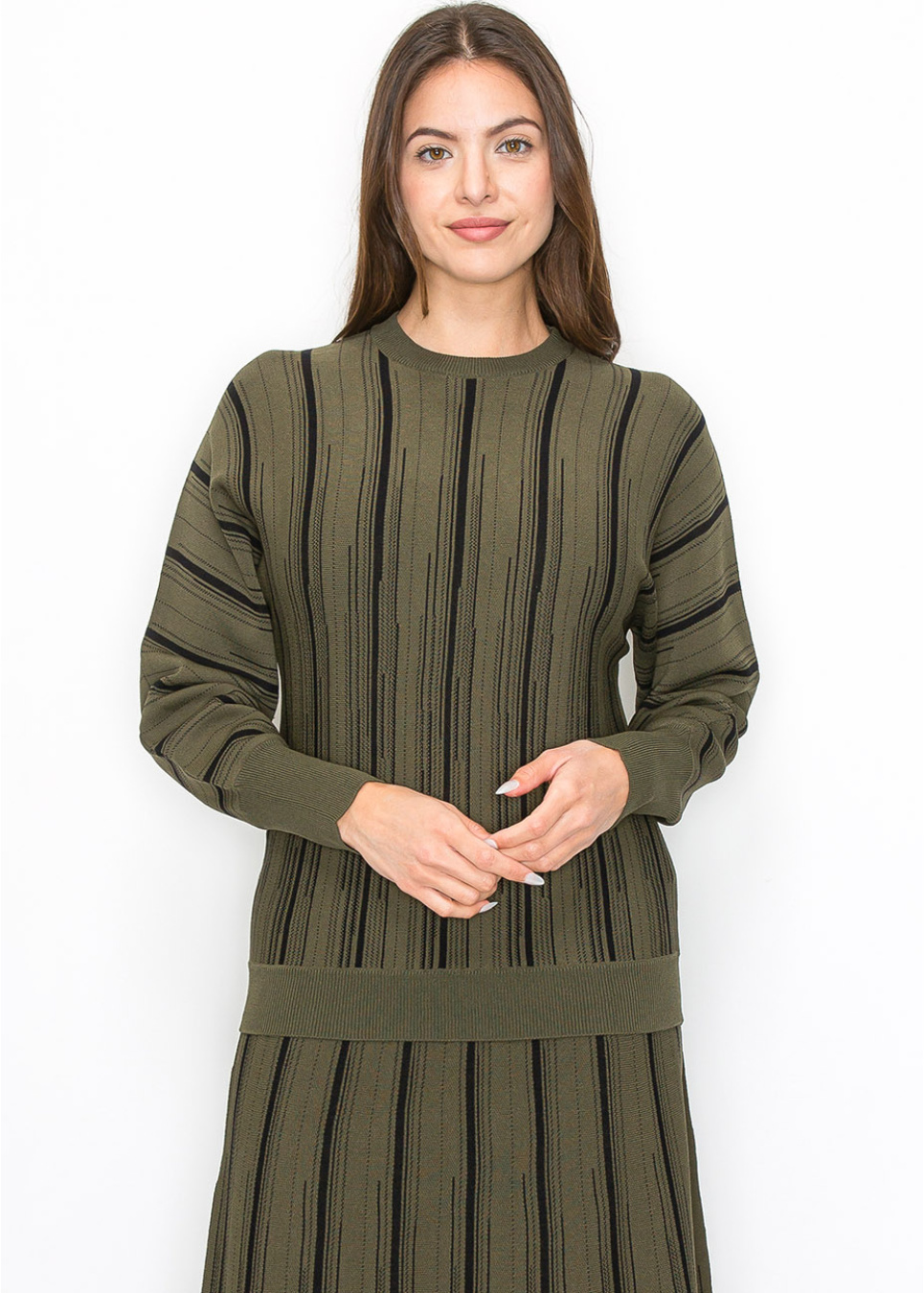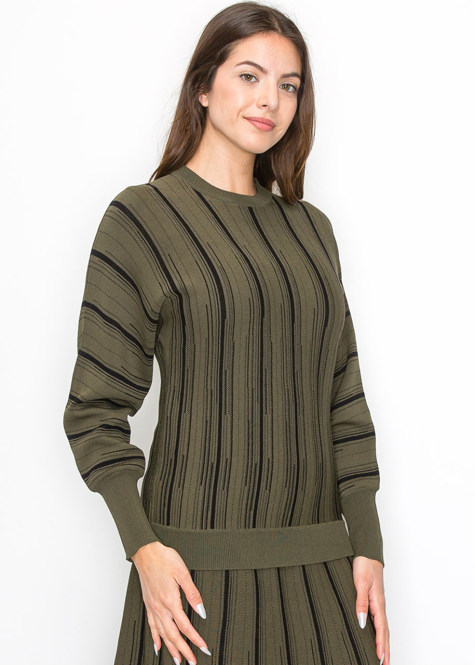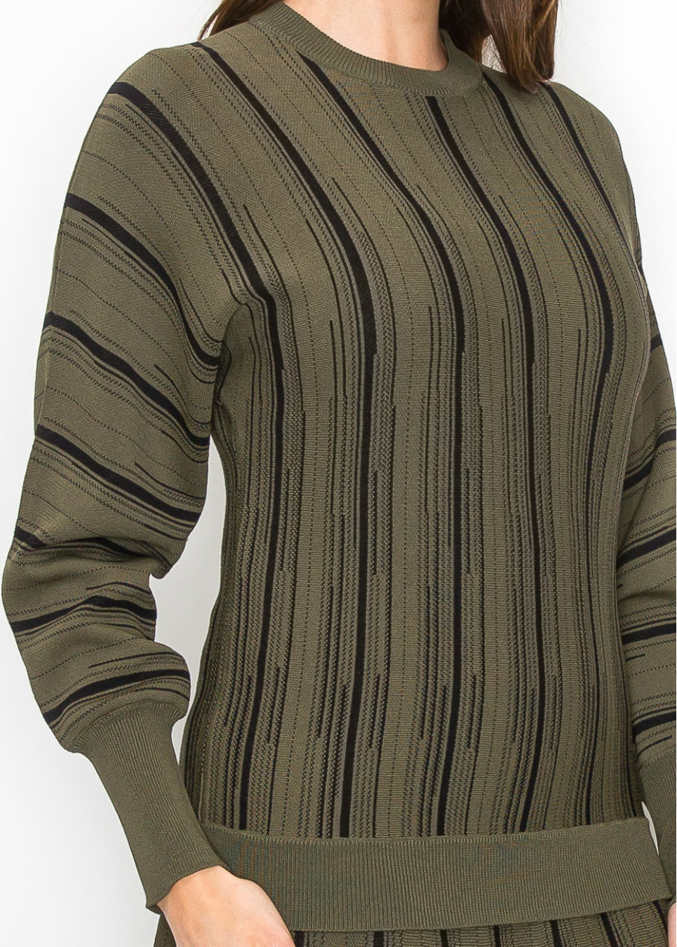 Olive Knit Sweater with Vertical Stripes