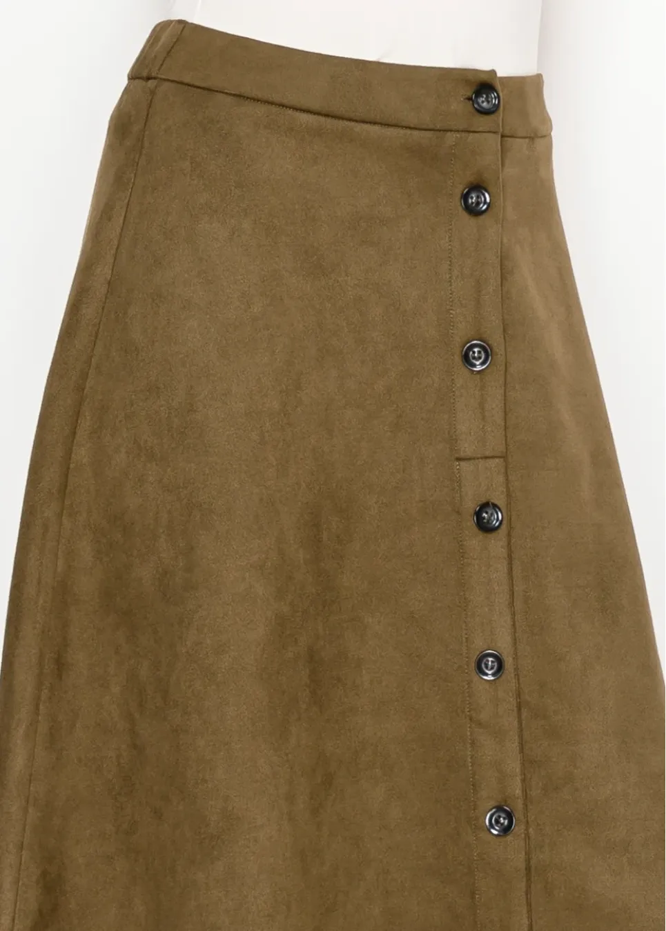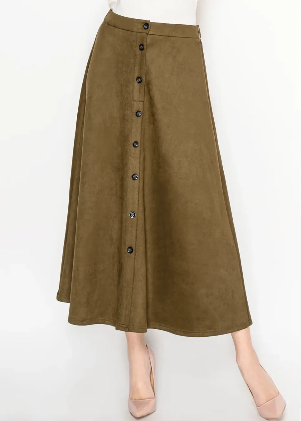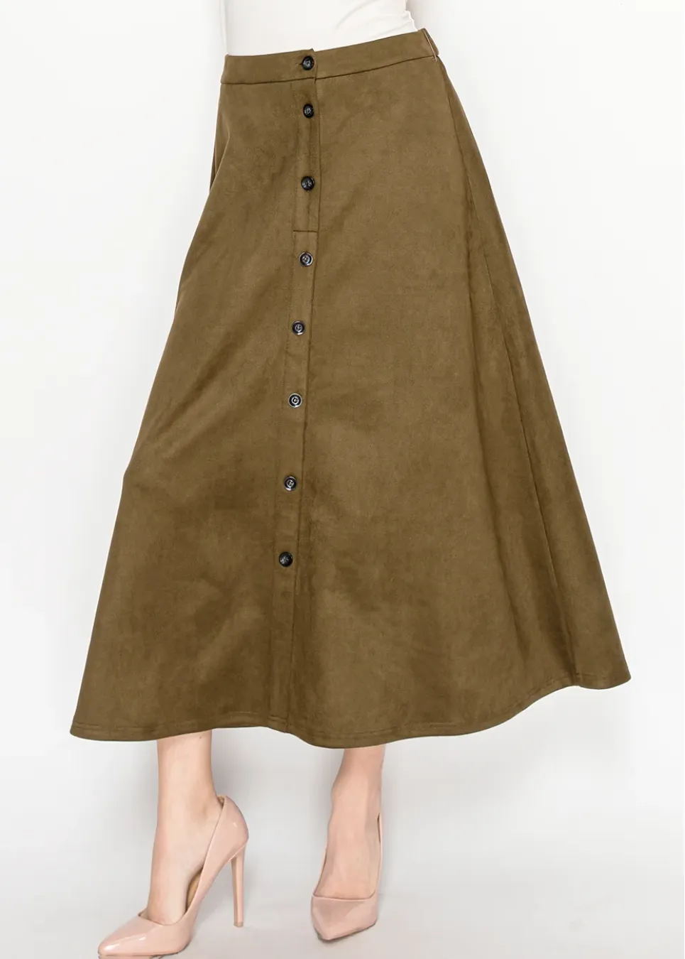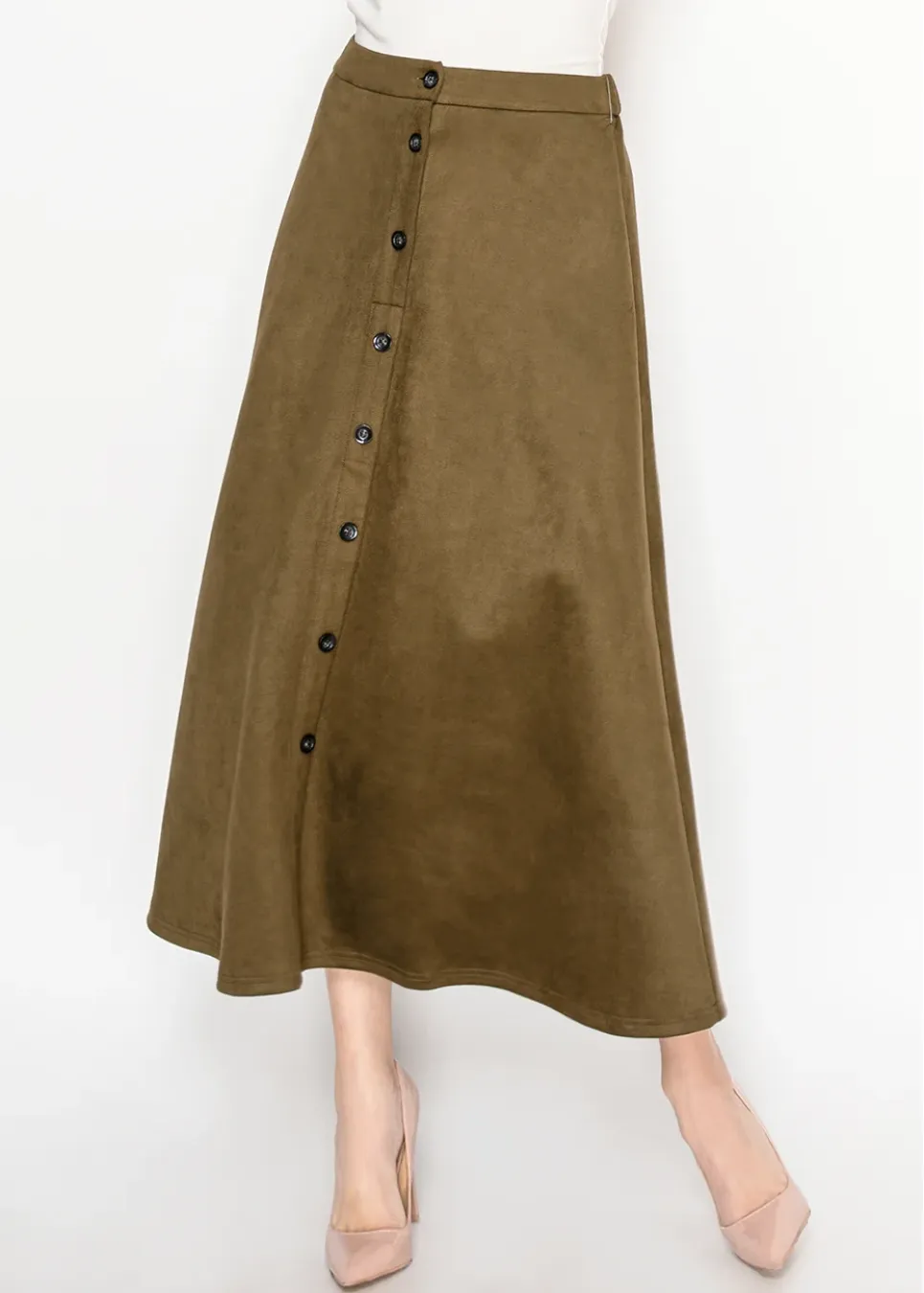 Olive Midi Skirt with Front Placket