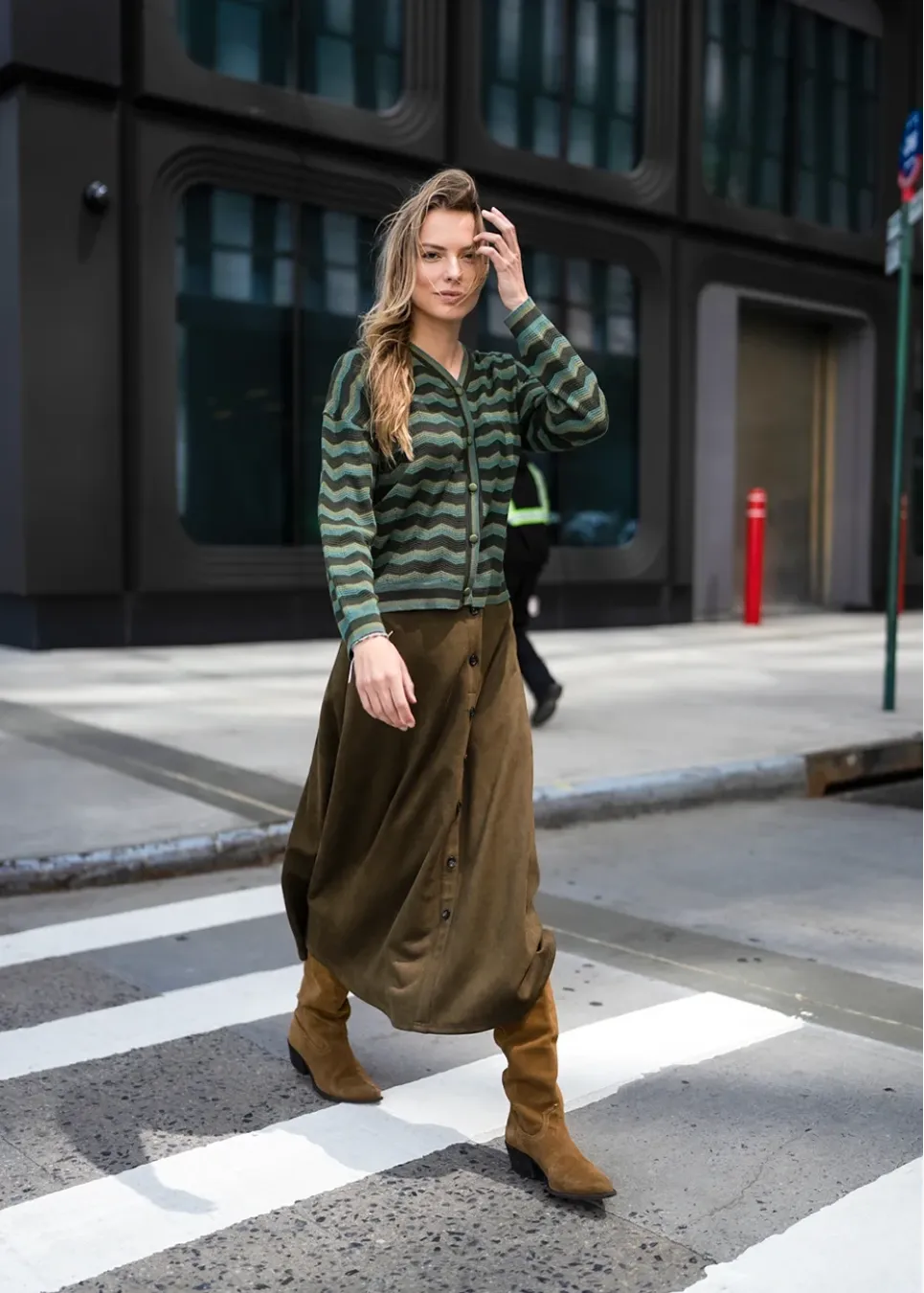Green Chevron Knit Fall Outfit