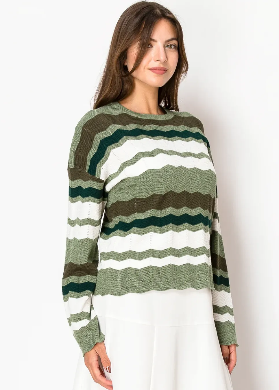 Multi-Stripe Olive Crewneck Knit Sweater