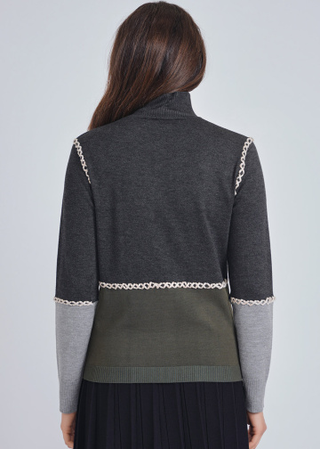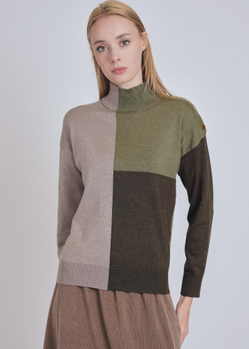 Olive Touch: High Neck Knit with Color Block Design