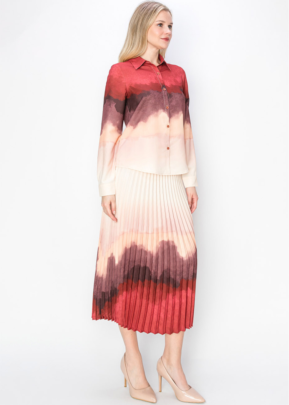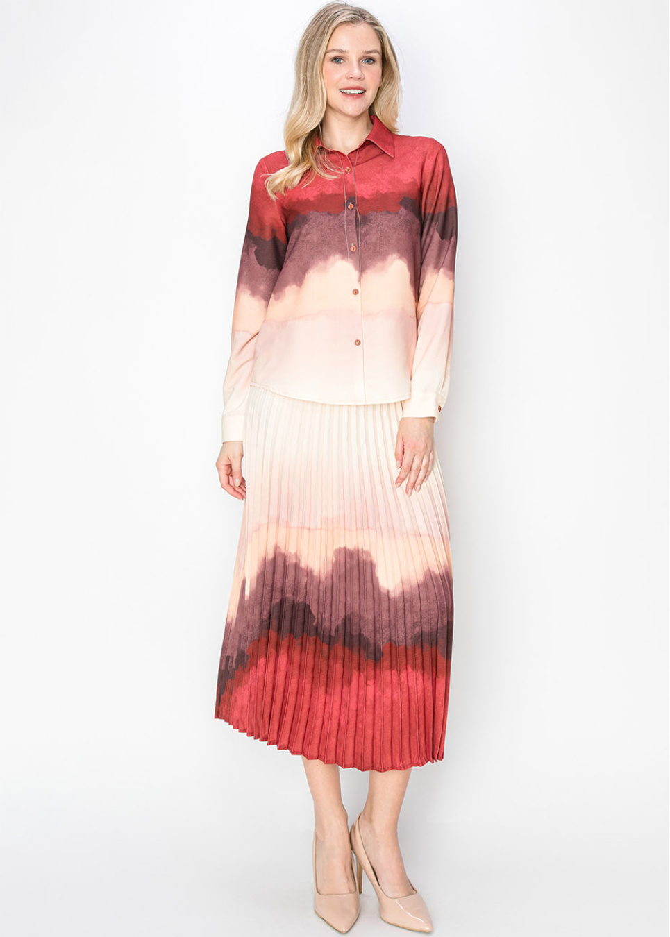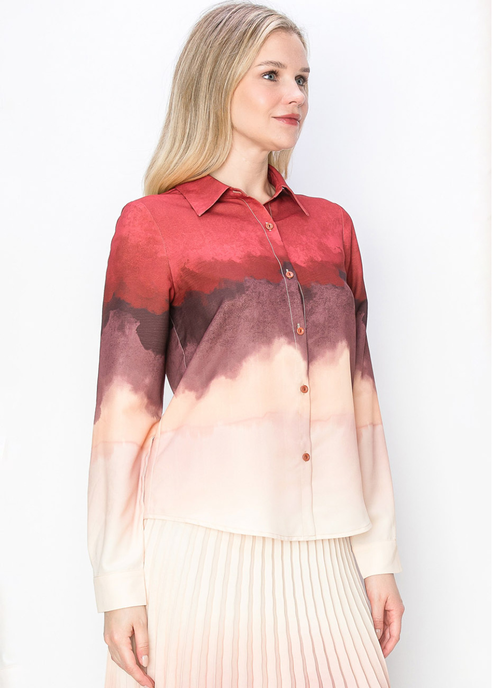 Get ready to turn heads with the Ombre Elegance Shirt. The smooth gradient from rich burgundy to soft cream makes this button-down a standout piece. It’s perfect for adding a pop of color to your look, and the easy-to-wear style means you can dress it up or down without a second thought.