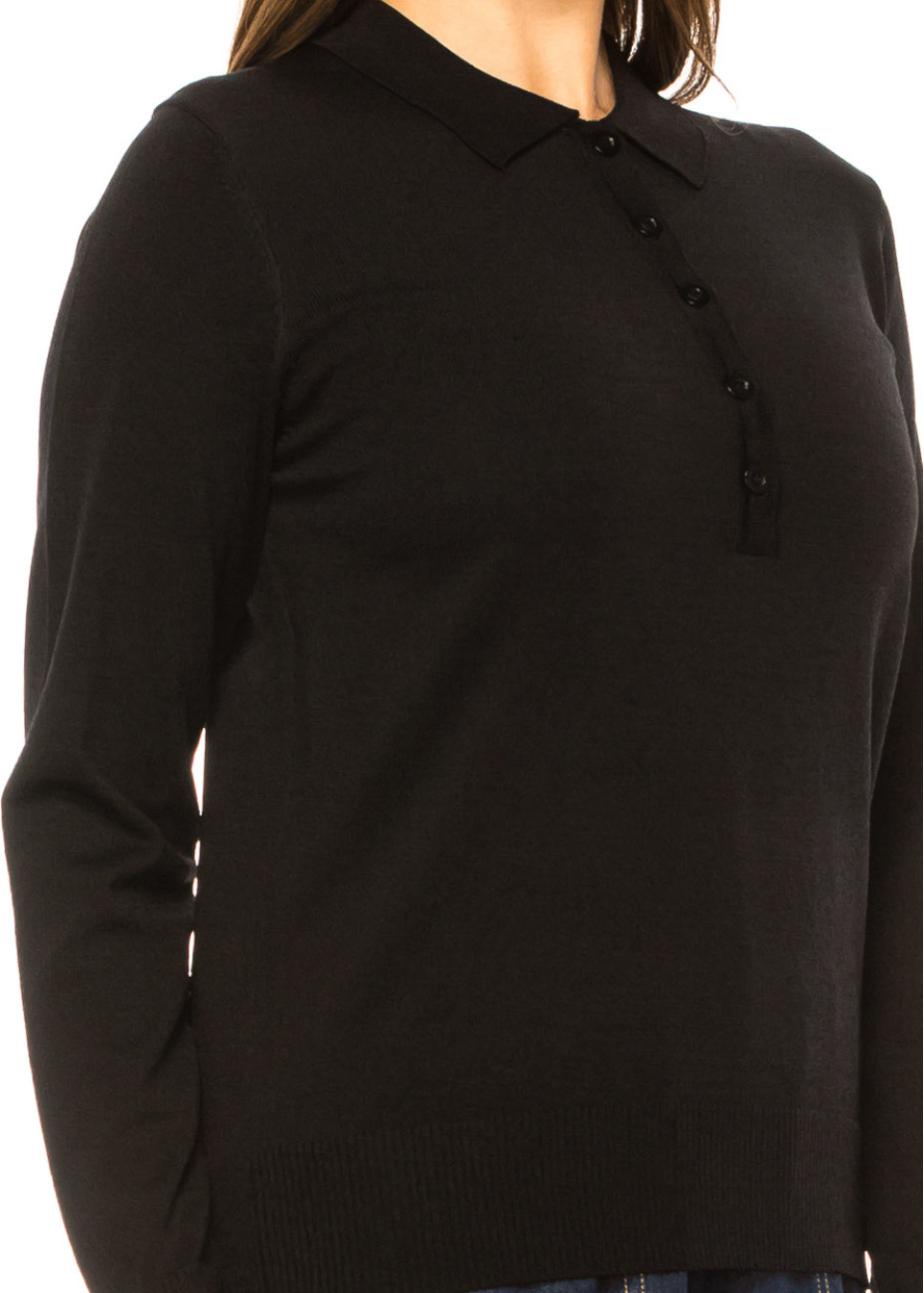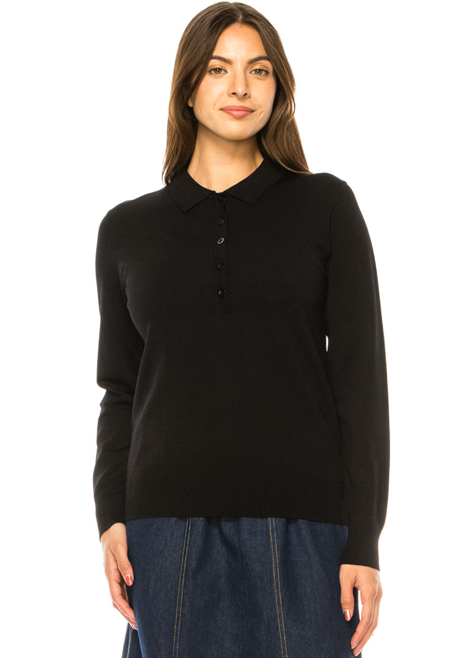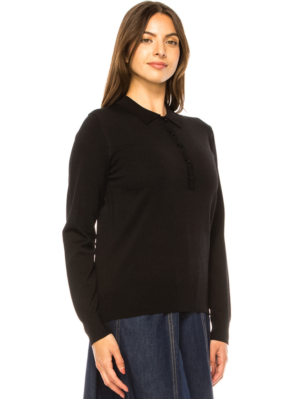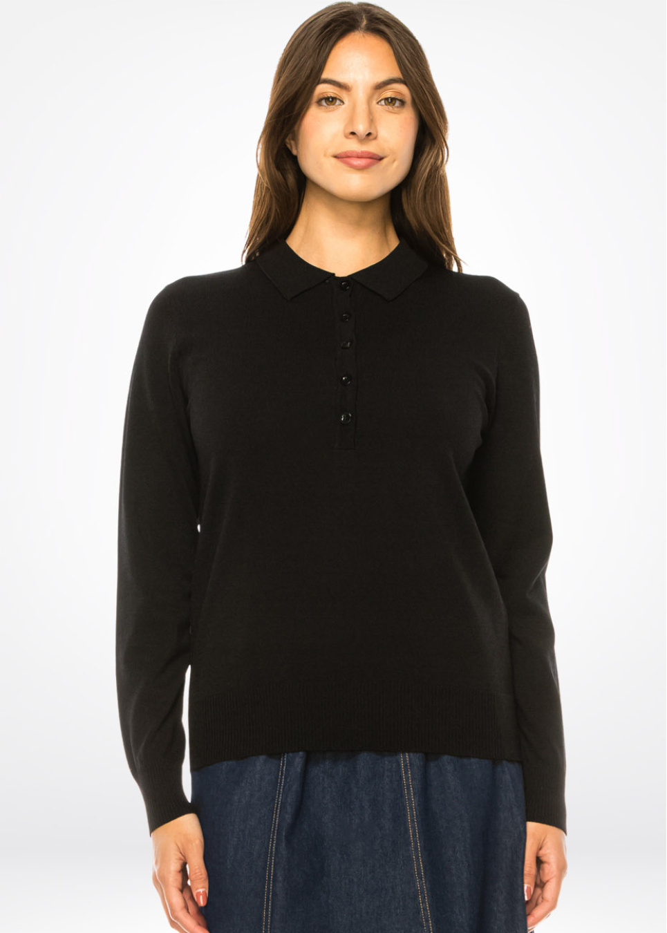 Black Knit Polo Sweater with Button Placket