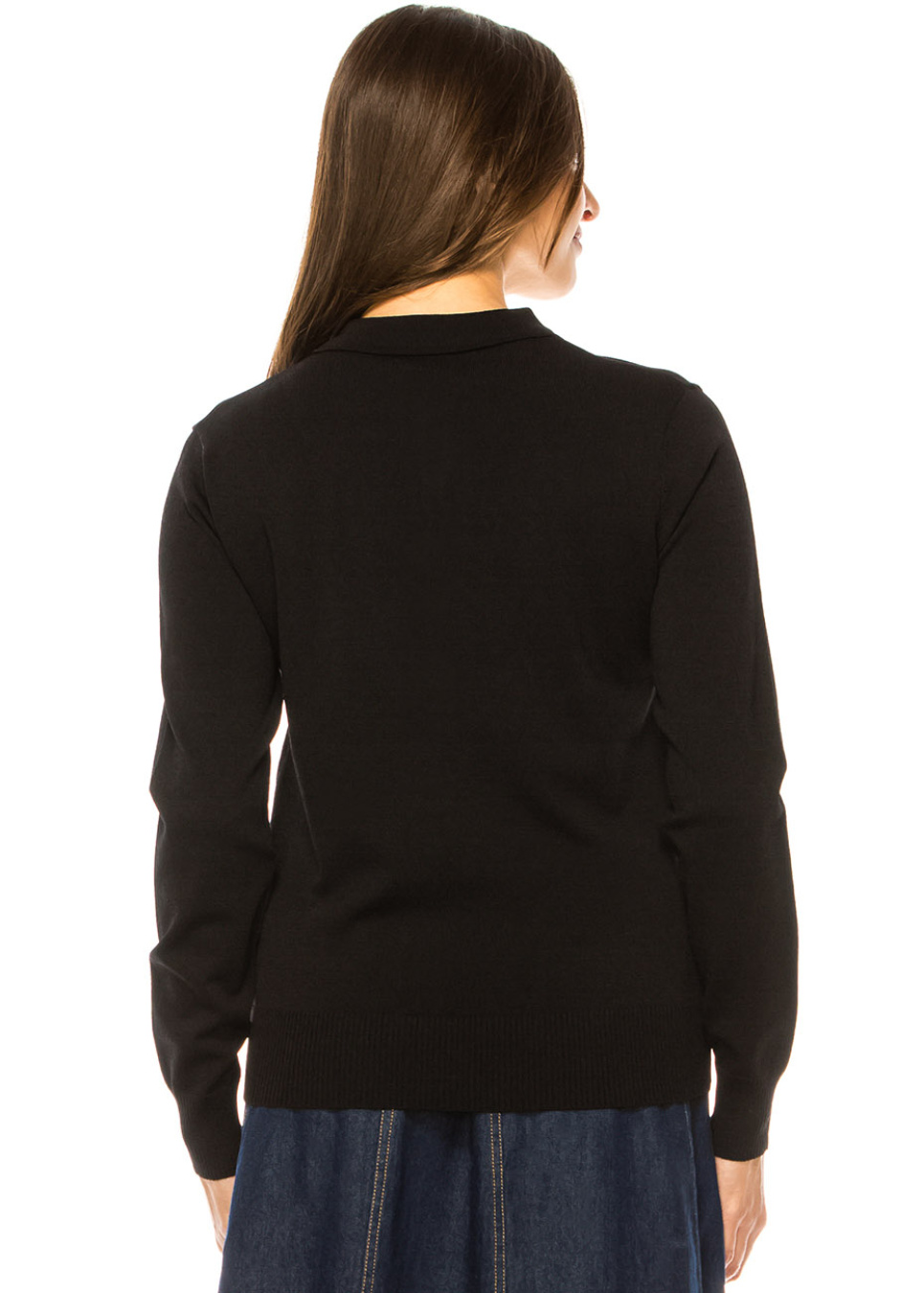 Long Sleeve Black Pullover with Denim Trim