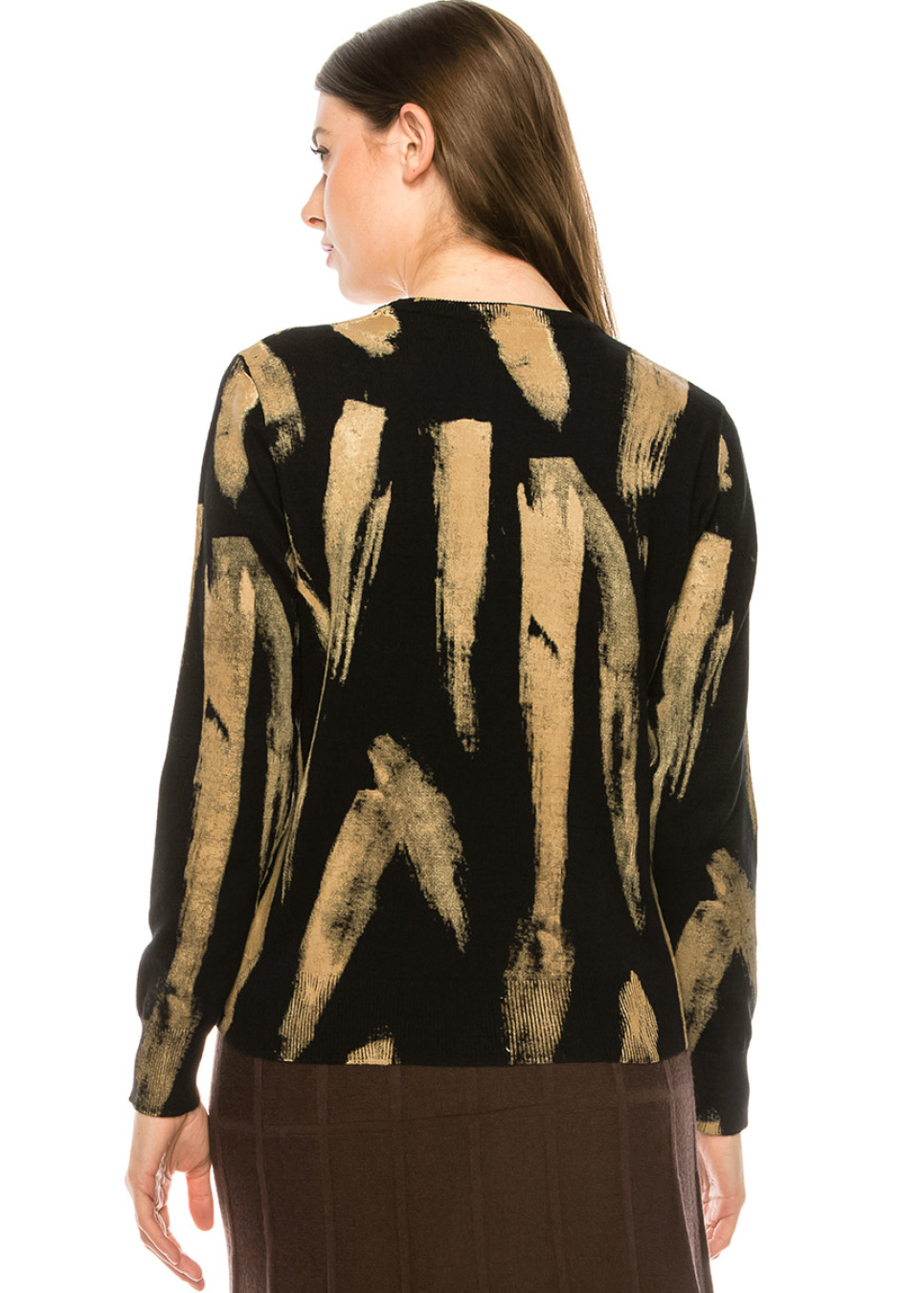 - Gold paint brush strokes add a fun texture to this top