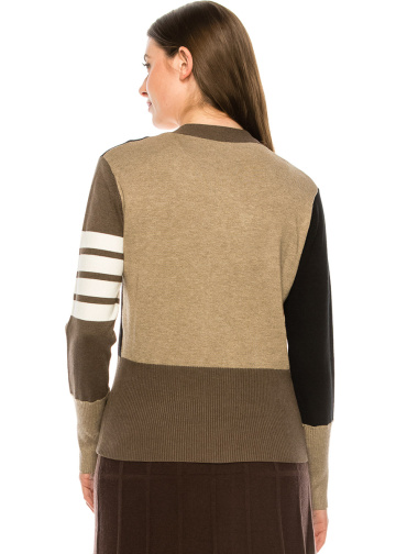 - The addition of striping on the arm really makes this cardigan pop