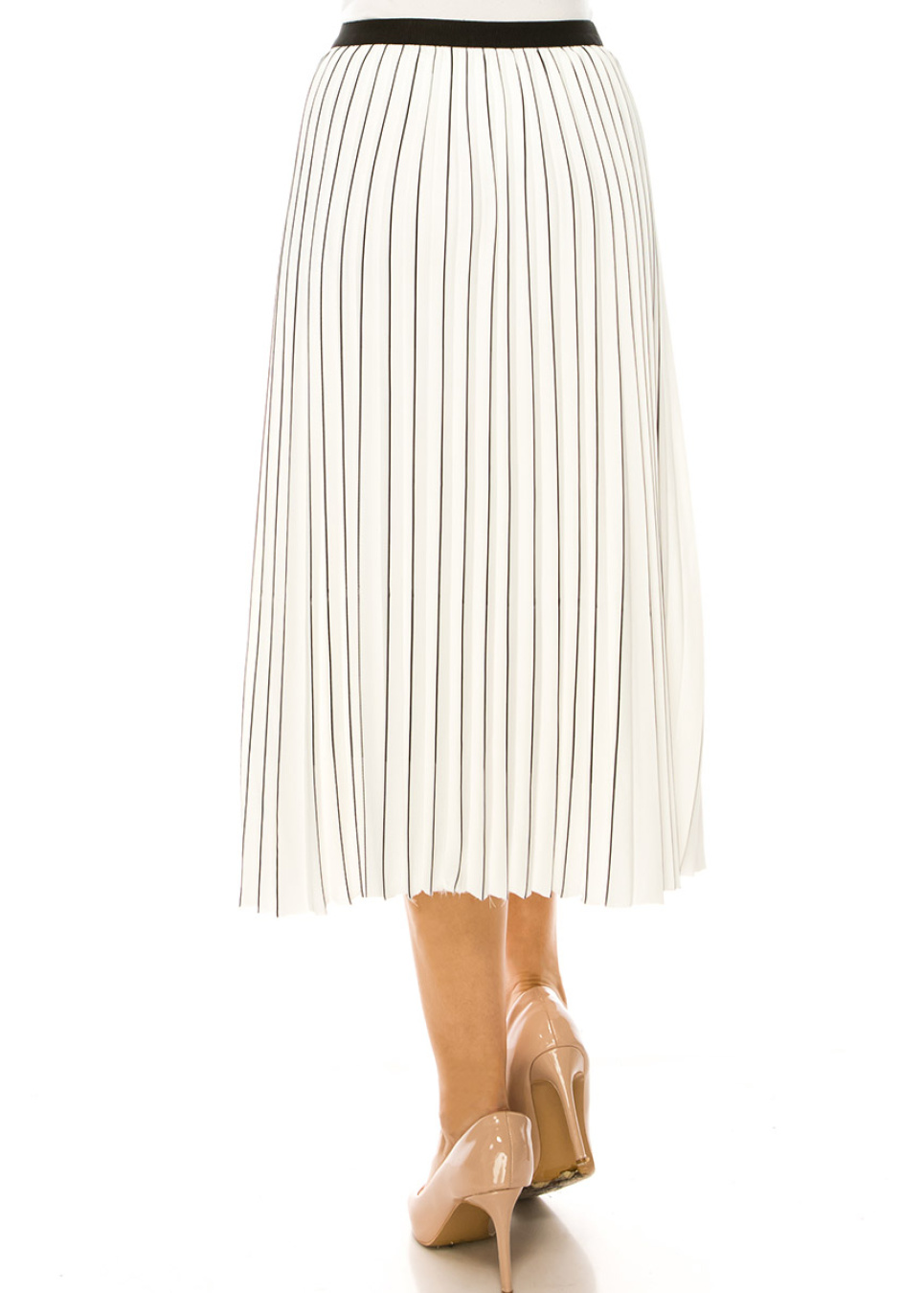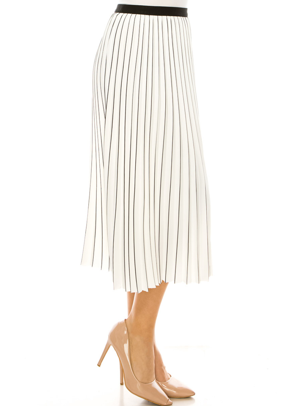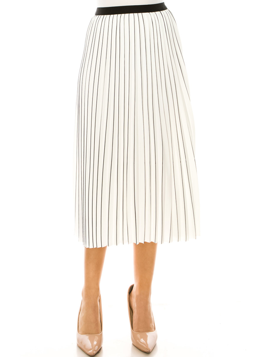 Piano Stripe Pleated Midi Skirt